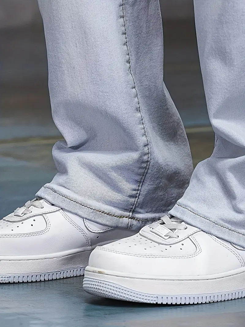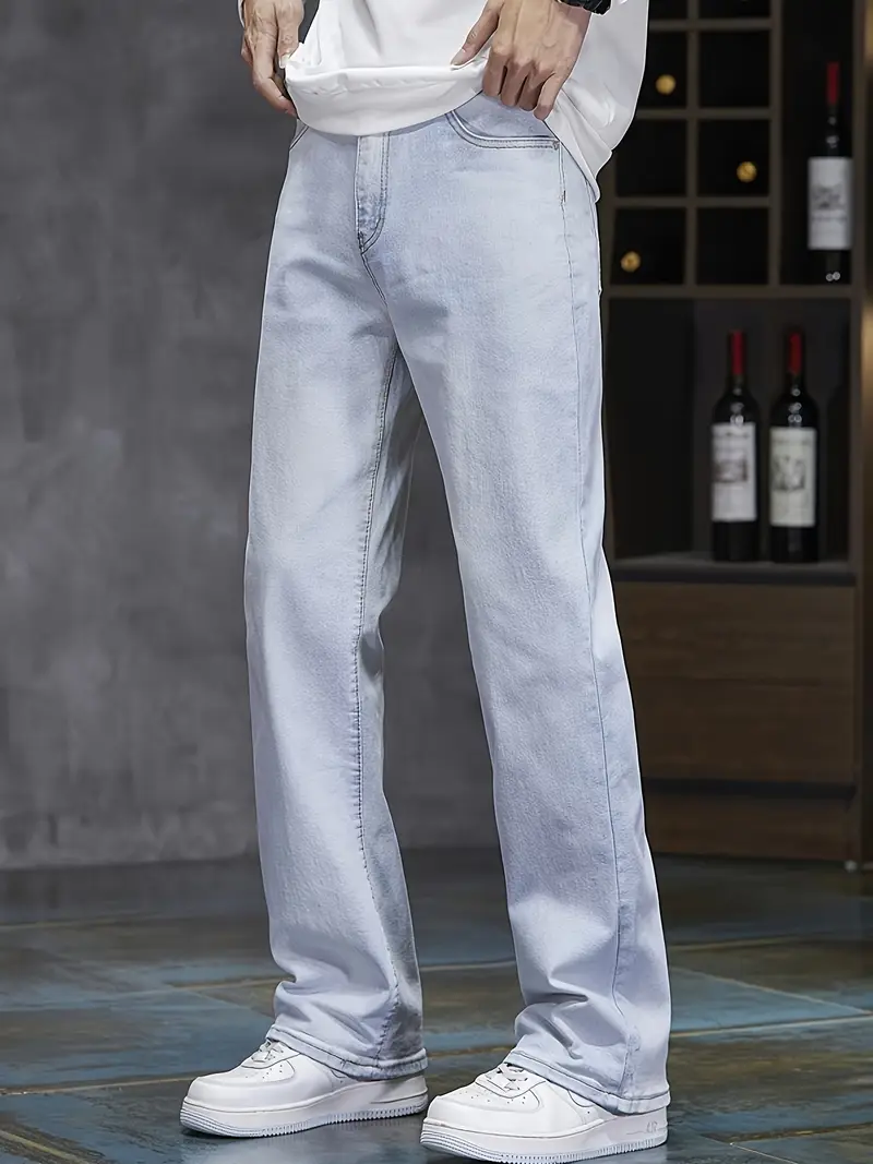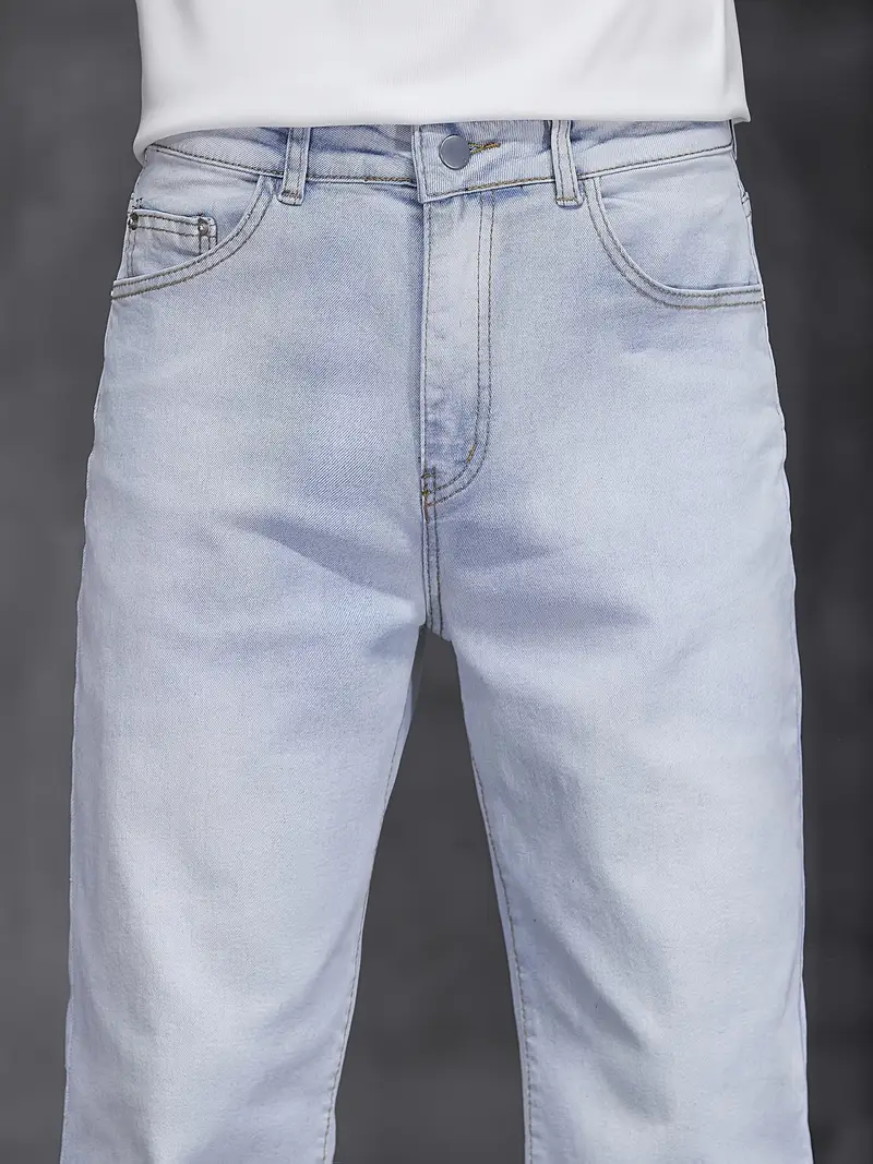 Տղամարդու բաց կապույտ Էլաստիկ գոտկատեղով ջինս - Relaxed Fit բազմակողմանի պատահական ջինսեր էլաստիկ գոտկատեղով և ծայրամասով, որը կարելի է լվանալ մեքենայում