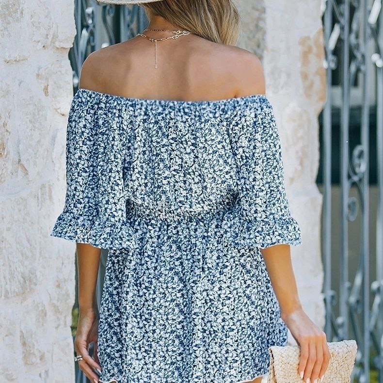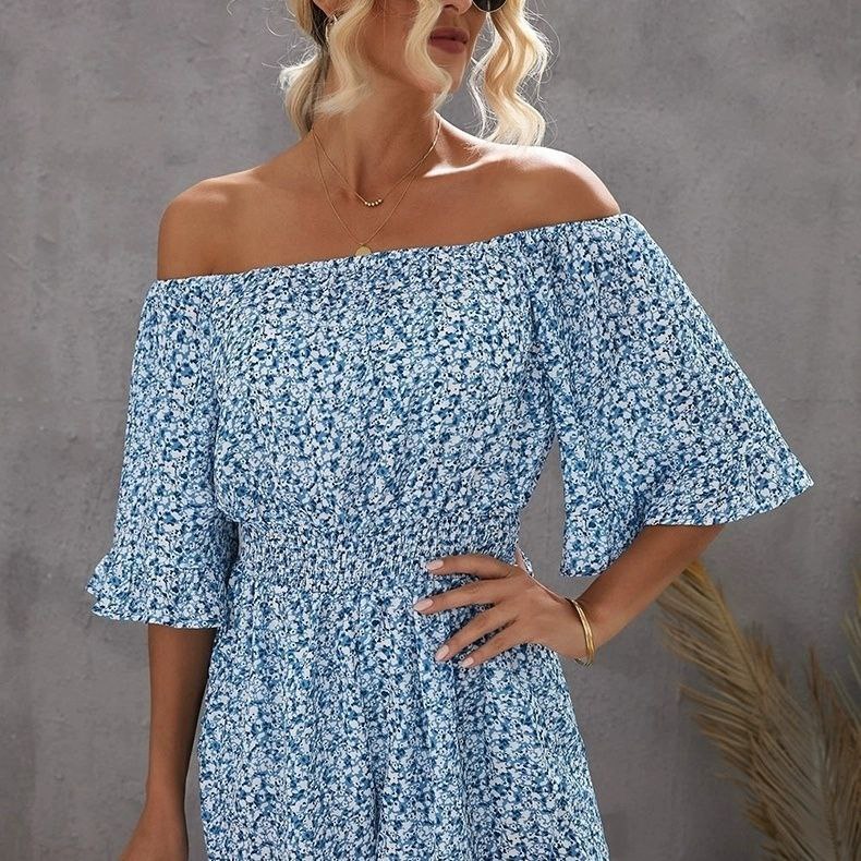 2024 նոր ոճի գոտկատեղով ծաղկային շորտեր, ամառային սեքսուալ կանացի կոմբինեզոն, եվրոպական և ամերիկյան ոճ մեկ գիծ օձիք զգեստ՝ ուսից դուրս։
