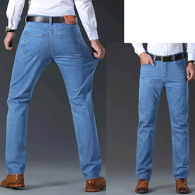 Տղամարդկանց ջինսե տաբատ բոլոր սեզոնների համար, 50% բամբակ՝ համակցված 1,2% էլաստանի հետ, թեթև ձգվող, միաձույլ գույն, դասական ուրվագիծ, գործվածքի քաշը 325 մգ, դասական առօրյա ոճ, խոնավ լվացում.