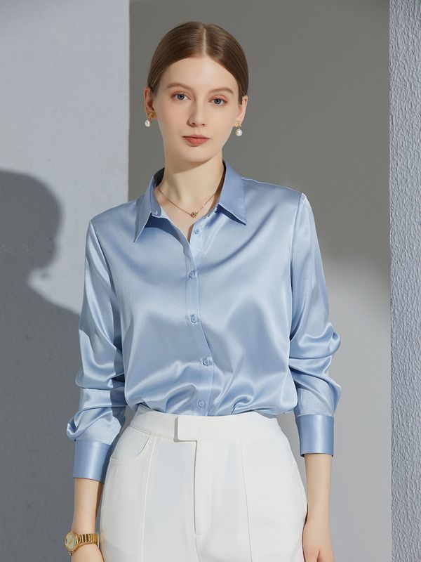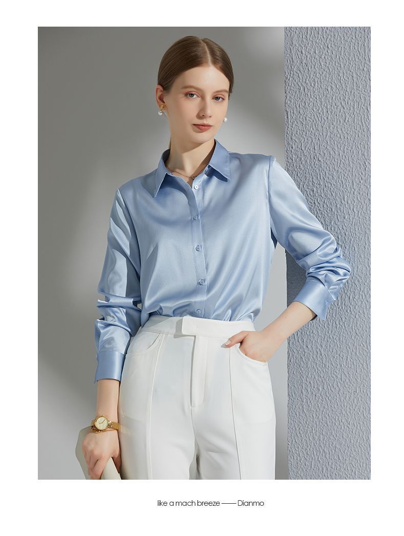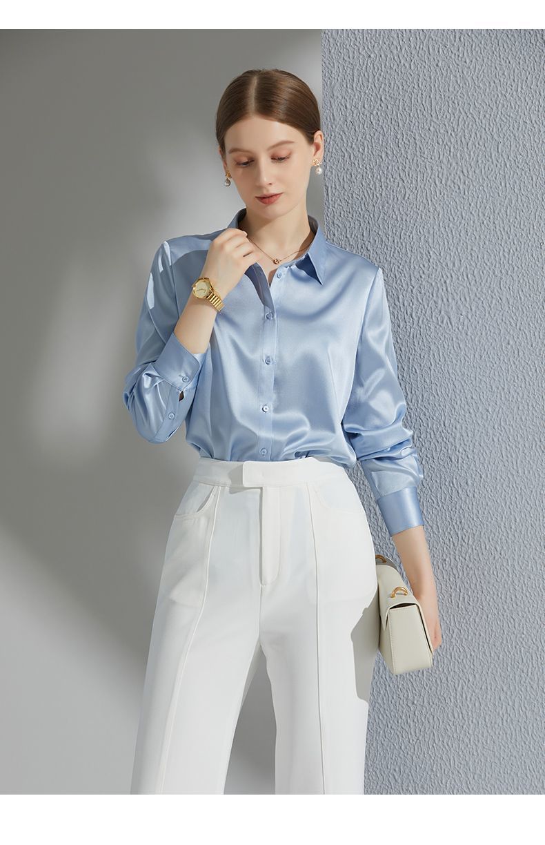 Բարձրակարգ մետաքսե-ատլասե վերնաշապիկ 2024` գարուն աշուն նոր արևմտյան ոճի, պոլիեստեր մանրաթելային 95 %։