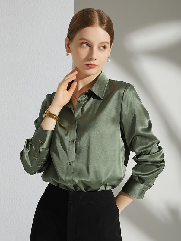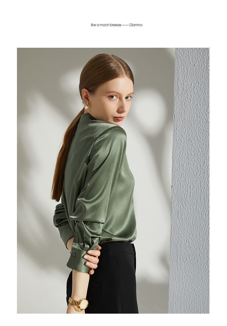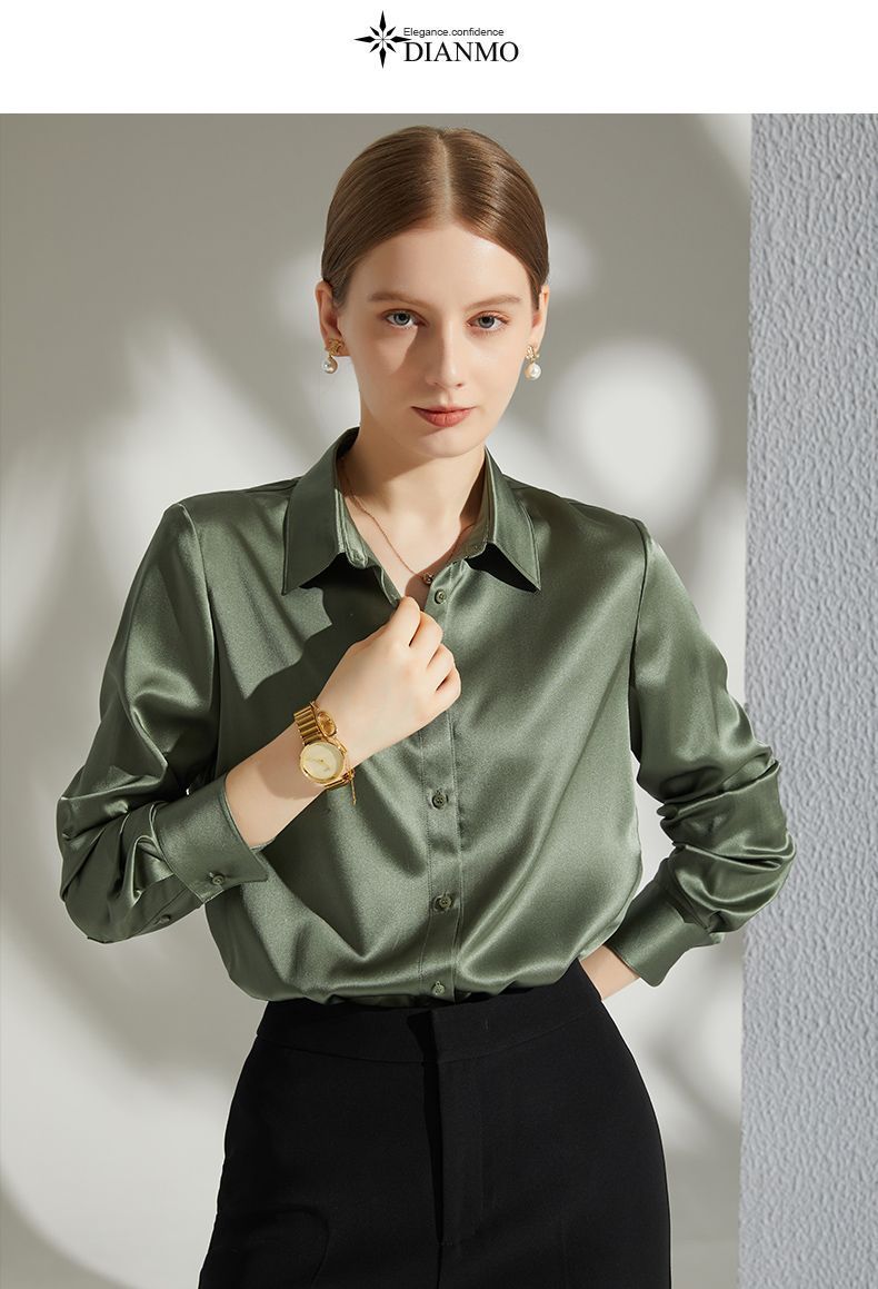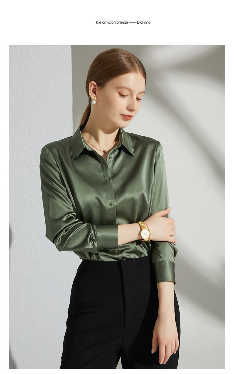 Բարձրակարգ մետաքսե-ատլասե վերնաշապիկ 2024` գարուն աշուն նոր արևմտյան ոճի, պոլիեստեր մանրաթելային 95 %։
