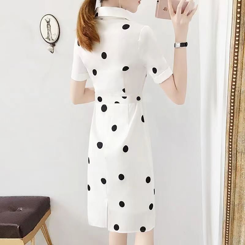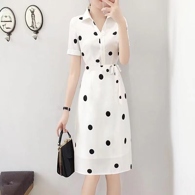 Եվրոպական թեթև և հասուն ոճով ժանյակաոր ձևավորում նիհարեցնող տեսքի համար POLKA DOT։A line կիսաշրջազգեստ պոլիեստերային մանրաթել  կոճակներով և մինիմալիստական ոճ։