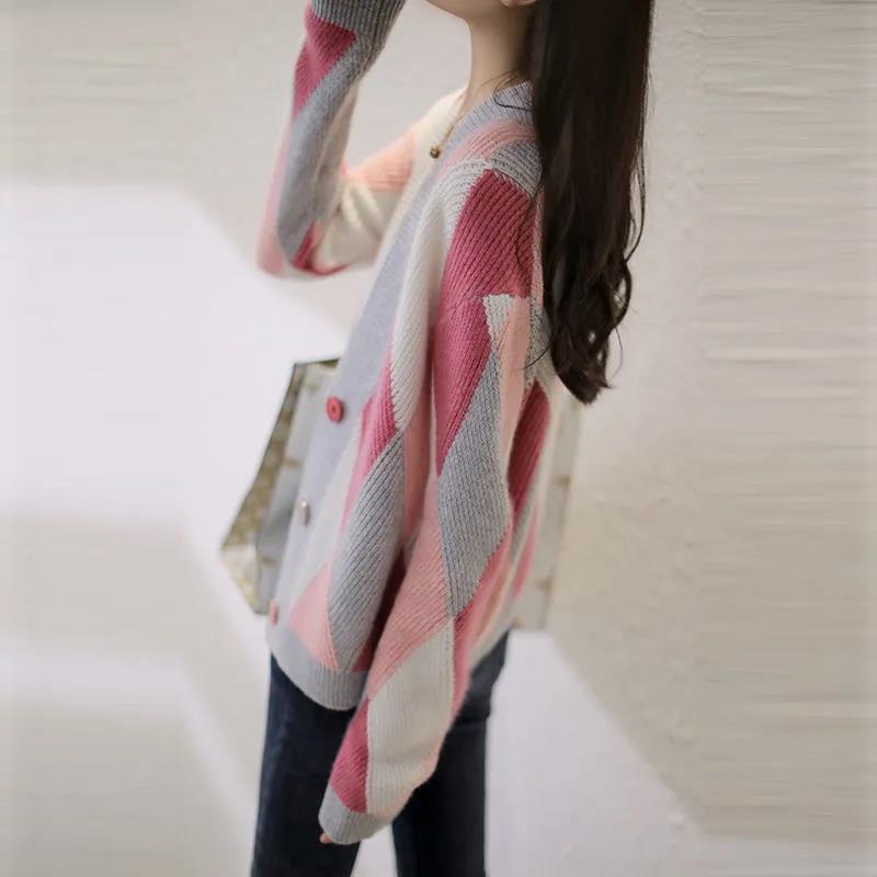 Նոր ոճով  գարուն աշուն տրիկոտաժե կորդիգան ազատ նորաձև ակրիլե գործվածք։