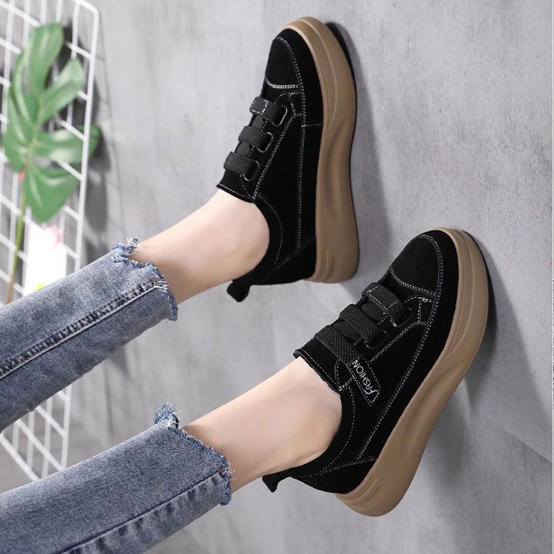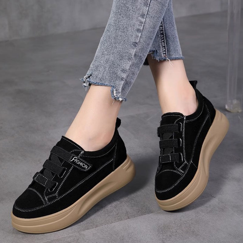 FLAGSHIP Store Little Black Shoes Կանացի 2024 գարուն աշուն Velcro Casual բարձր սուպեր փափուկ շնչող լատեքսային ներբան TPU նյութ օգտագործված։