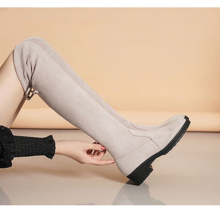 2024 Dragonfly հաստ կրունկներով էլաստիկ երկարաճիտ Եվրոպա Ամերիկյան ոճ երեսպատման նյութ կաշմիր անջրանցիկ խաչաձեվ ժապավեններով կարգավորվող ներբան ռետինե ընդհանուր բարձրորակ կաշվե։