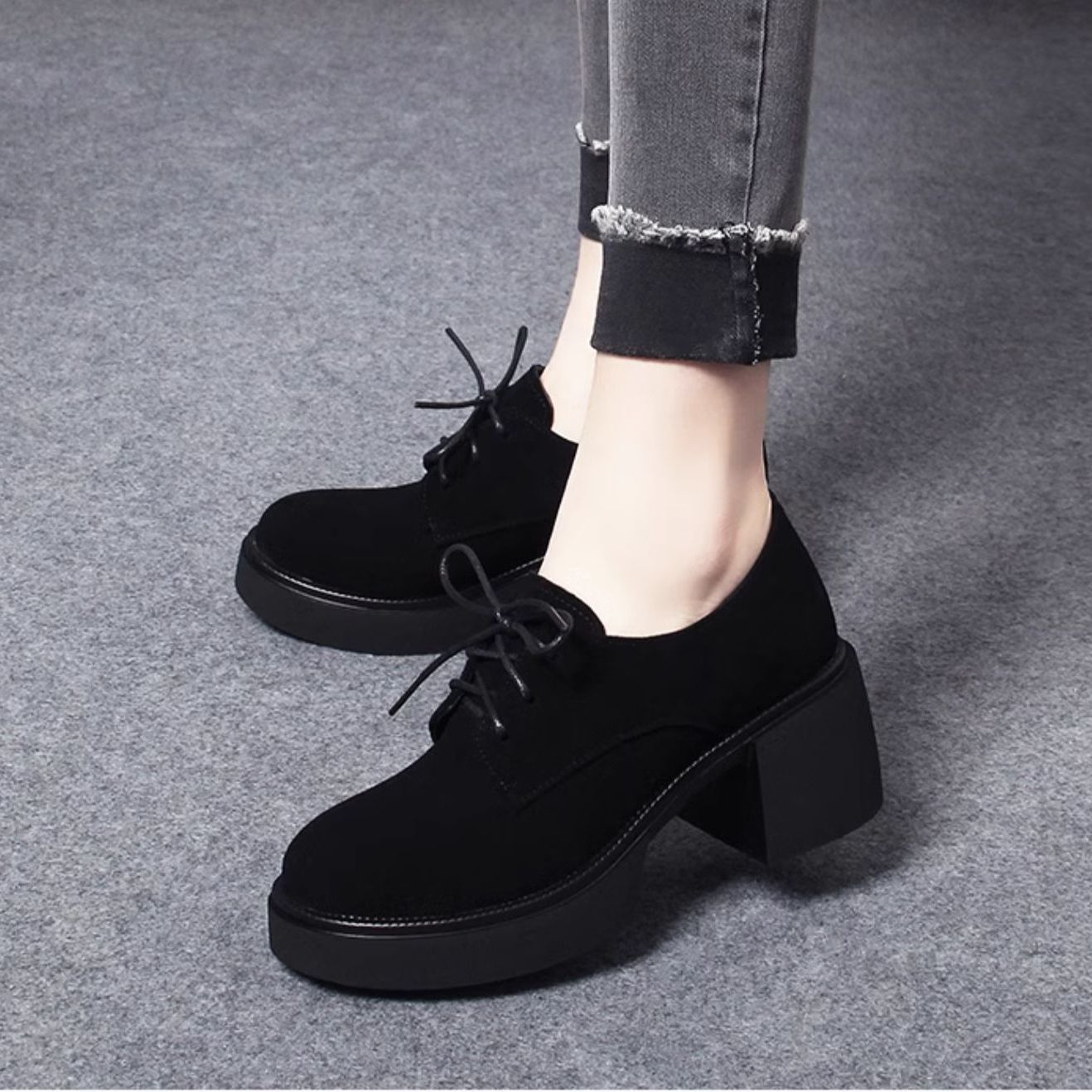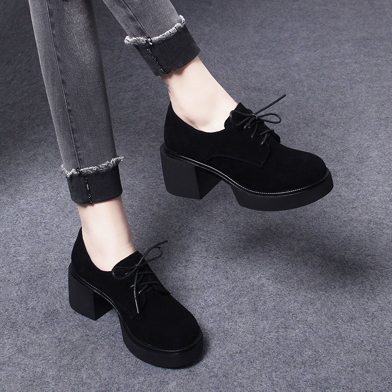 2024 հաստ տակերով կոշիկ կաշվե գարուն աշուն գերփափուկ վերեվի հատված ժանյակ ռետինե կաշվե կրունկ 5-7 սմ