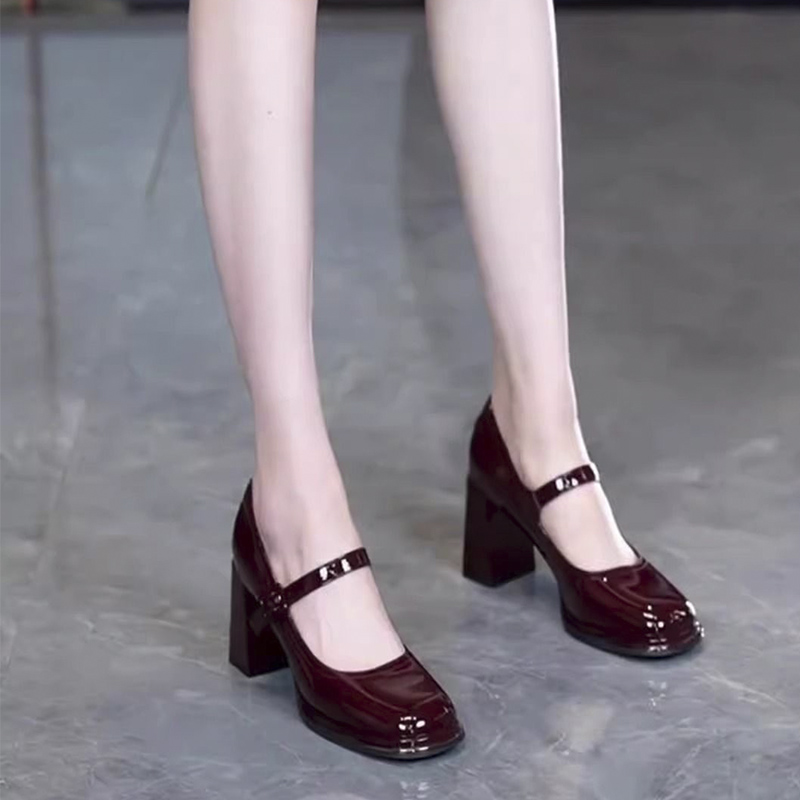 Բնական կաշվից փայլուն ճարմանդով և հաստ կրունկով լաքից կոշիկներ Mary Jane  կաշվե և ռետինե ոճ ճամփորդել։
