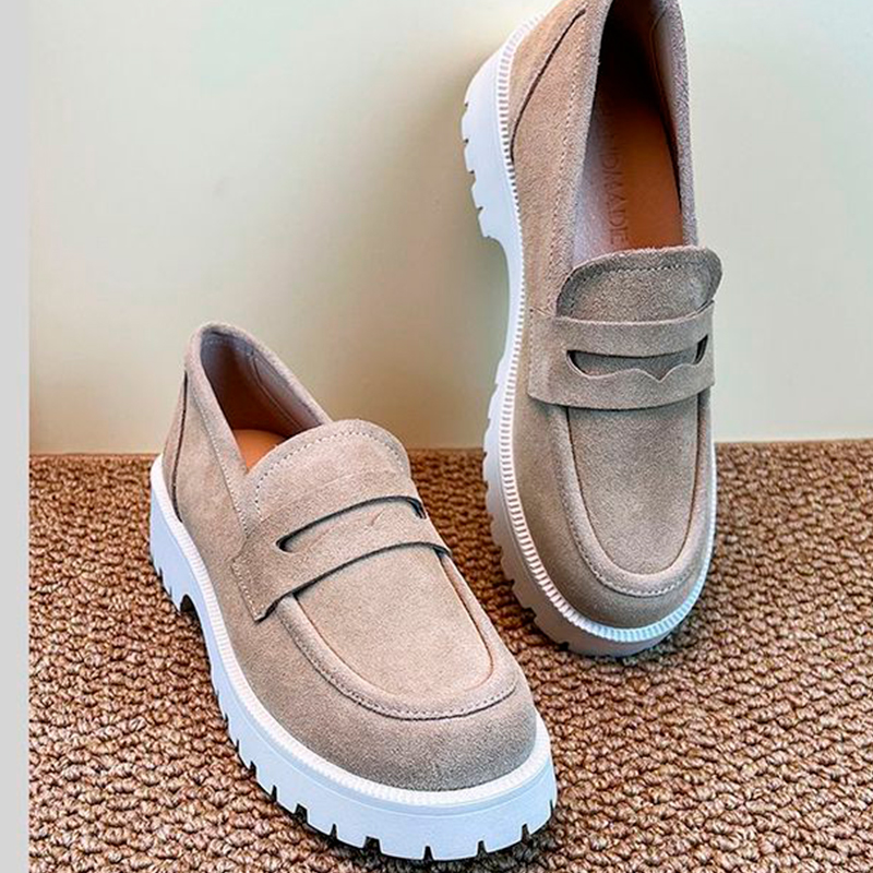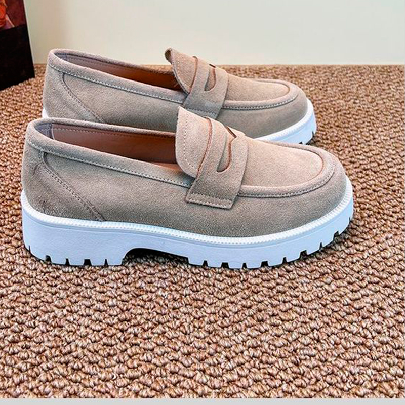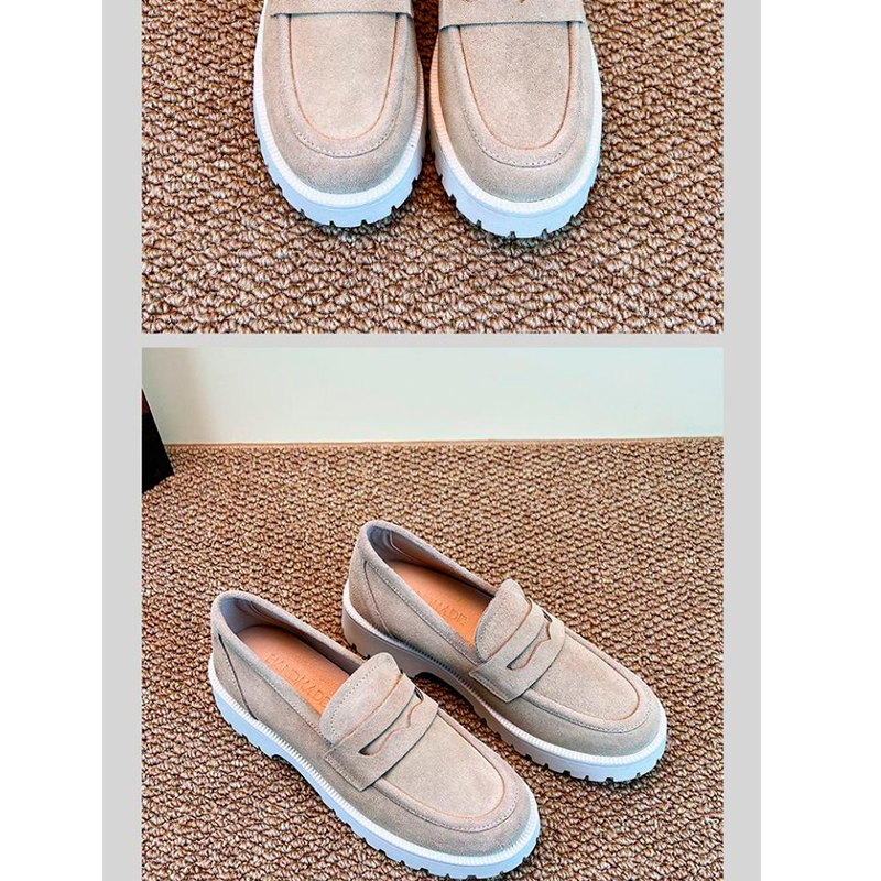 2024 գարնանային և աշնանային լոֆերներ բնական կաշվից  հաստ ներբանով Բրիտանական կանացի կոշիկներ հաստ ներբանով  և ռետինե կրունկի ոճ հարթ 3-5 սմ։