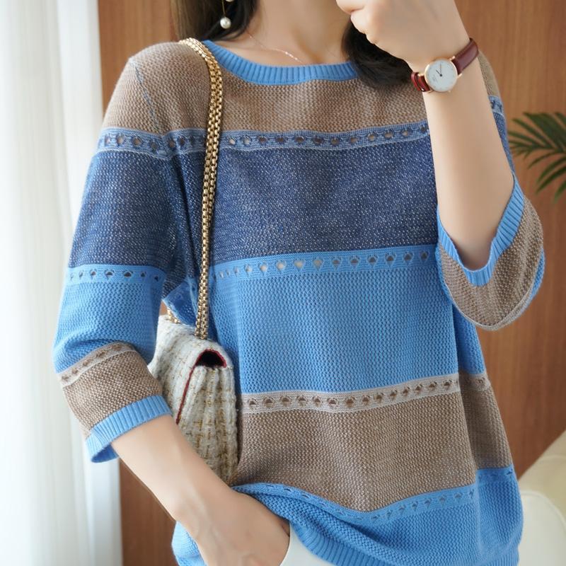 2024 նոր ոճով գարուն աշուն, կլոր վզով՝ տրիկոտաժե։