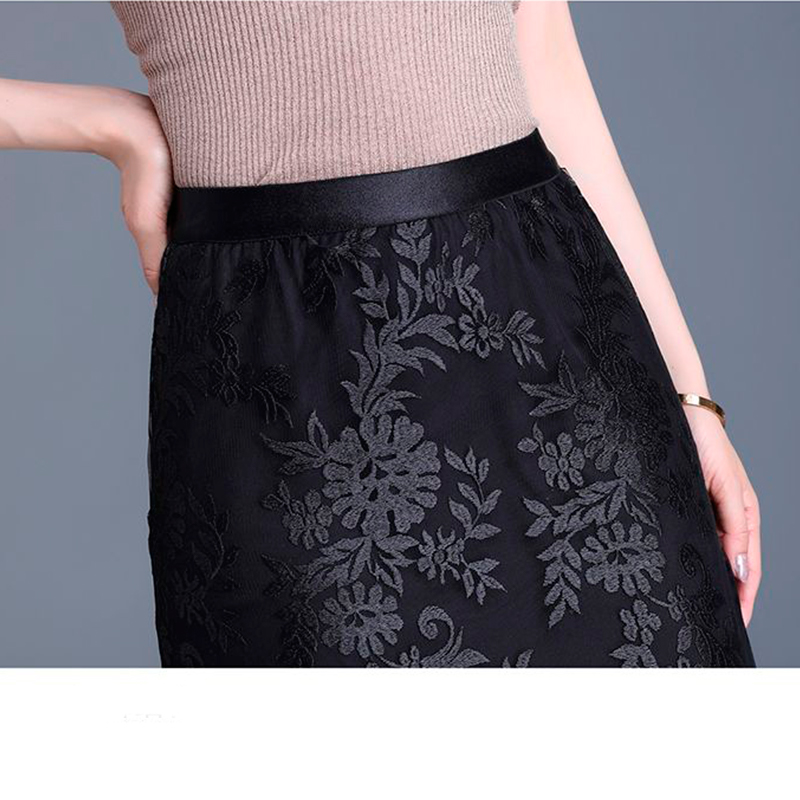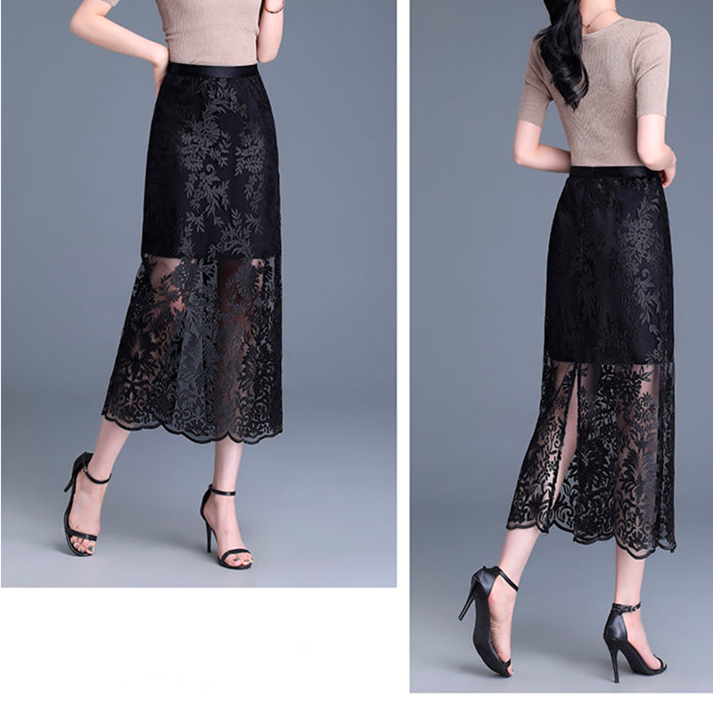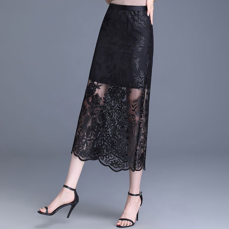 2024 ժանյակավոր ցանցի կիսաշրջազգեստ ասեղնագործած բարակ ամառային նոր ոճի միջին երկարությամբ և բացվածքով բարձր գոտկատեղ  ազդրը ծածկող ժանյակ պոլիեստեր մանրաթել։