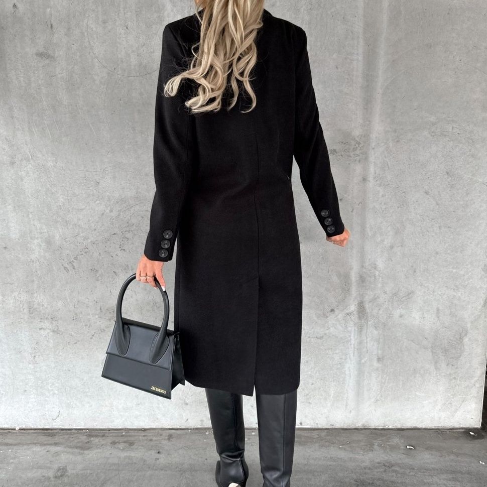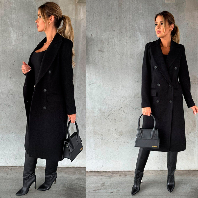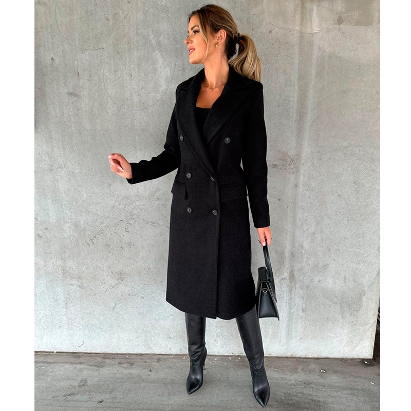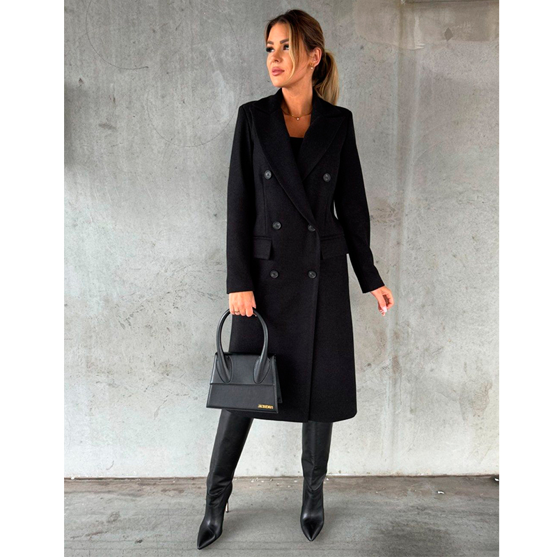 2024 նոր Եվրոպա Ամերիկյան ոճի աշուն ձմեռ կանացի V-աձև պարանոցով բրդյա վերարկու երկար Բրիտանական ոճ։
