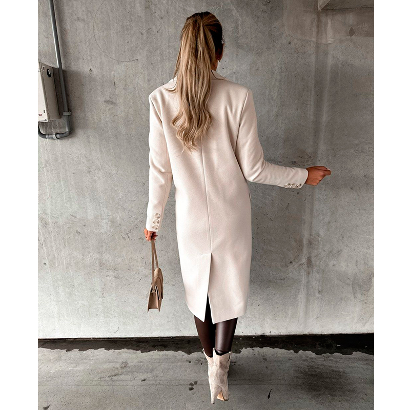 2024 նոր Եվրոպա Ամերիկյան ոճի աշուն ձմեռ կանացի V-աձև պարանոցով բրդյա վերարկու երկար Բրիտանական ոճ։