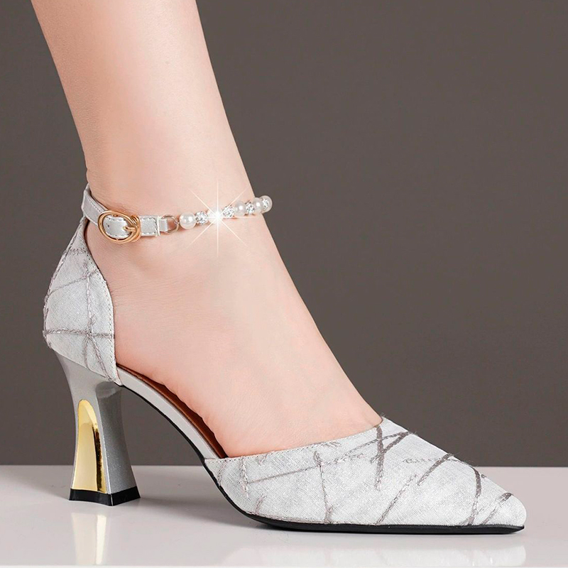 2024 Բարձրորակ կաշվե փափուկ նոր ոճի բնական ճարմանդներով հաստ բարձր կրունկներով սրածայր։