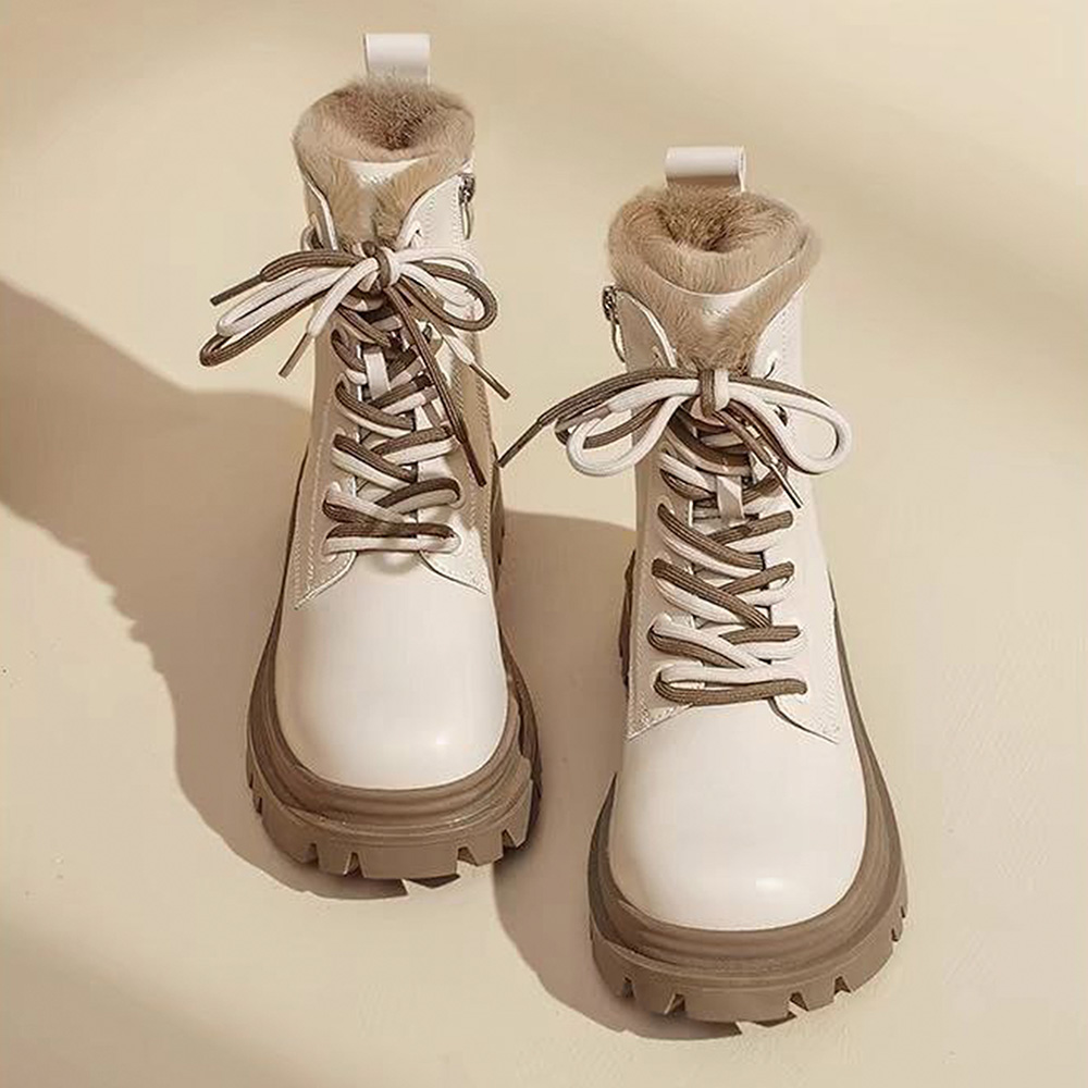 Real Rabbit Fur Martin Boots for Women 2024 Thick Sole Snow բարձրությամբ ձյան երկարաճիթ կոշիկ ուսանողական հաստ ներբան ներսից բրդյա նյութ պլյուշ և ռետինե արջեվի ժապավեն և կայծակաճարմանդ կրունկ 3-5 սմ։
