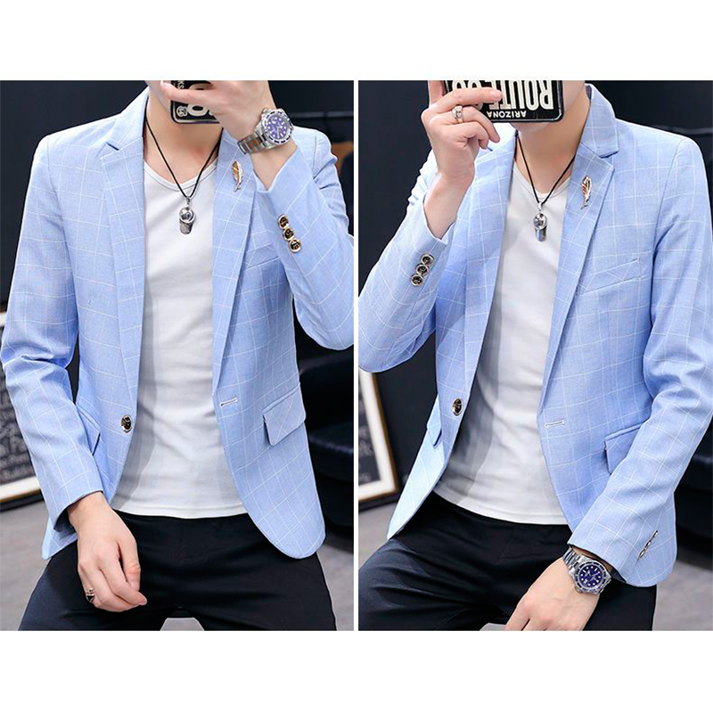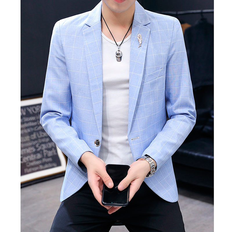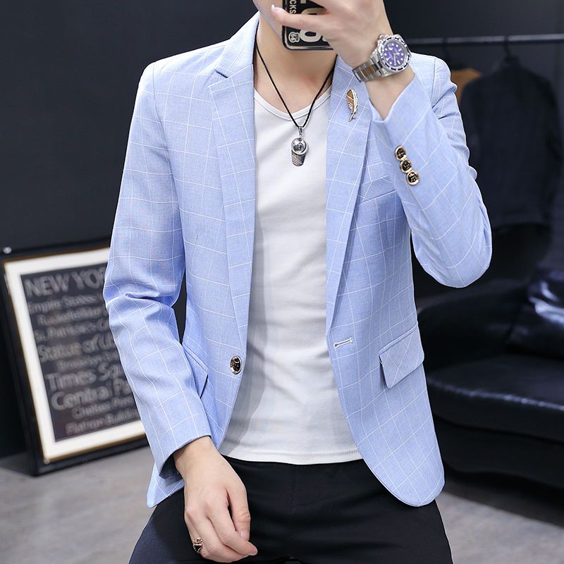 Գարուն աշուն նոր բարակ վանդակավոր պիջակ օձիք ծալքավոր պոլիեստեր մանրաթելային մեկ կոճակով։