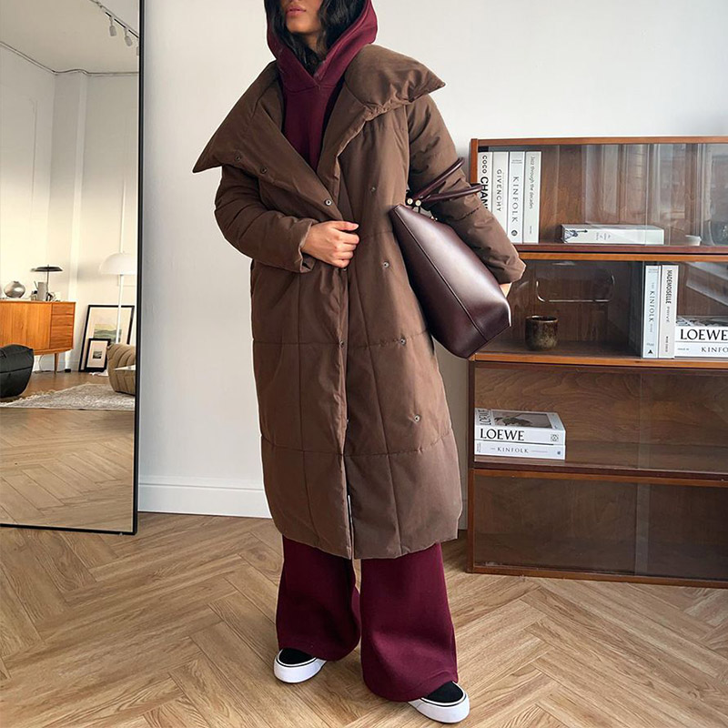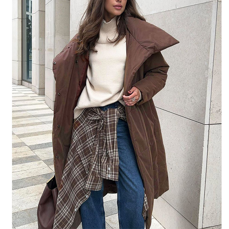 2024 երկար տաք ձմեռային Եվրոպա Ամերիկյան ոճով ազատ և առօրյա երկար օձիքով։