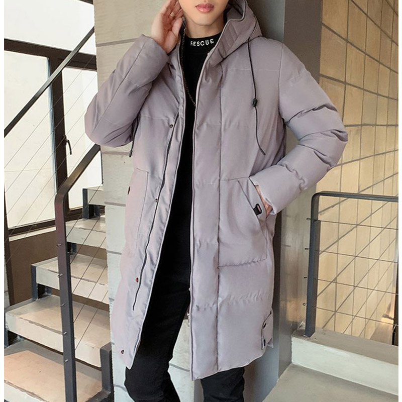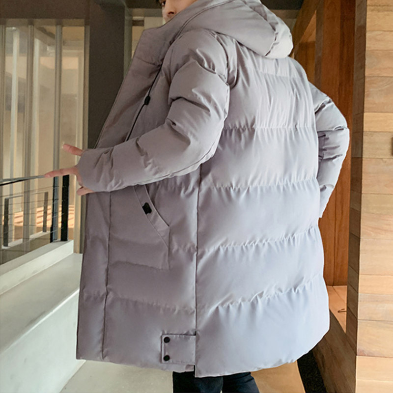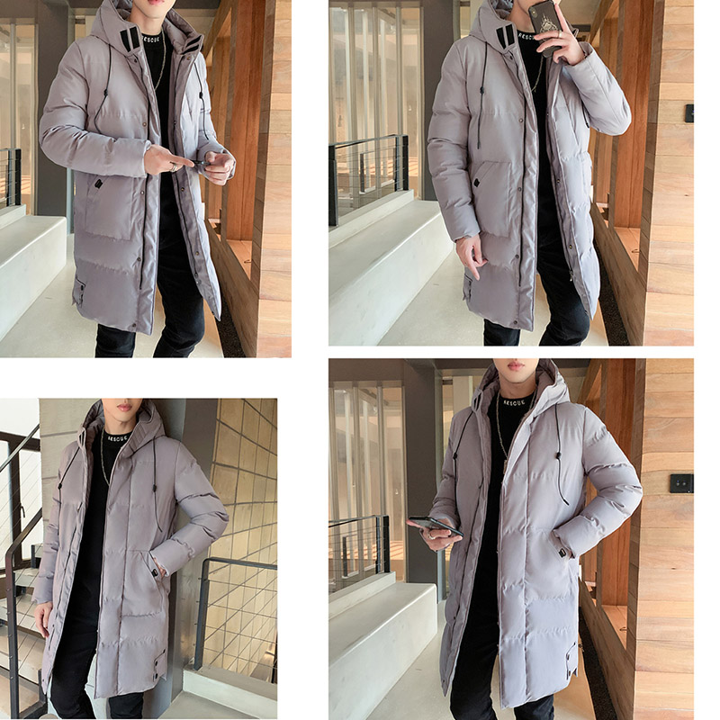2024 նոր տղամարդկանց գերժամանակակից հողմակայուն ցրտադիմացկուն հաստ լցոնվածք բամբակյա ձմեռային երկար մինչև ծնկներ կցված գլխարկով ։