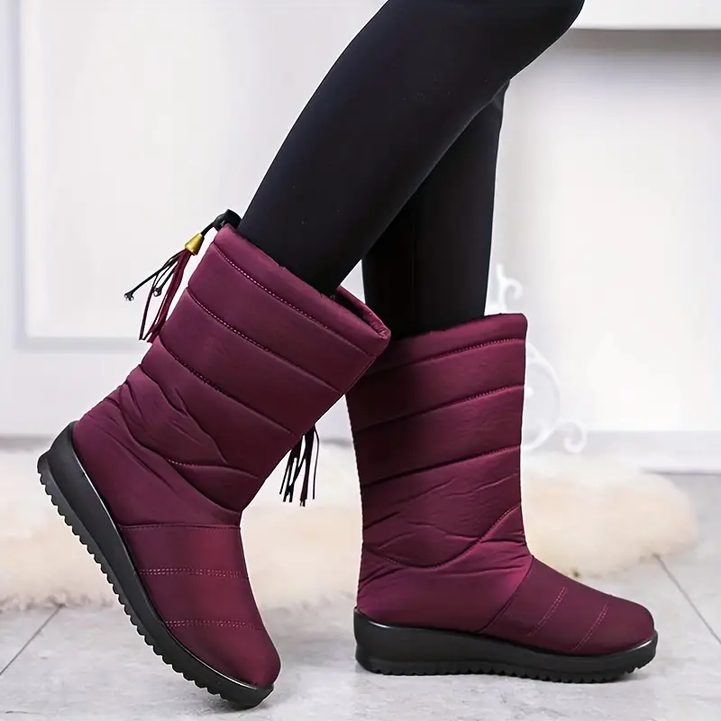 Կանացի անջրանցիկ տափակ երկարաճիտ կոշիկներ Ամուր ջերմություն պահող ձմեռային երկարաճիտ դեկորացիայով տաք
