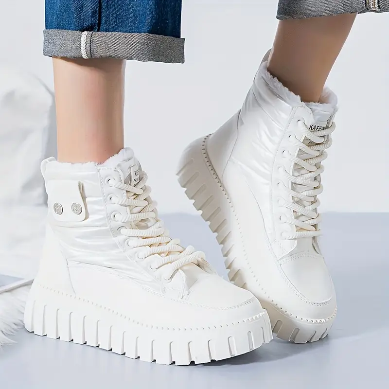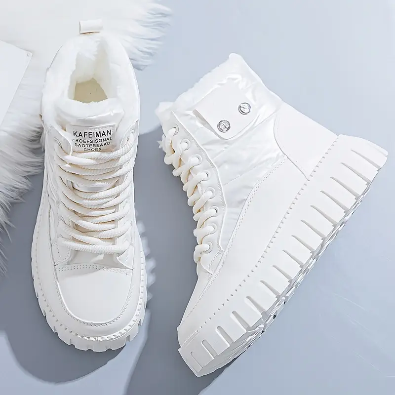 կանացի ձմեռային տաք ֆլիզ կոշիկներ բամբակյա ժանյակավոր կոշիկներ Հարմարավետ միագույն վերնամասով