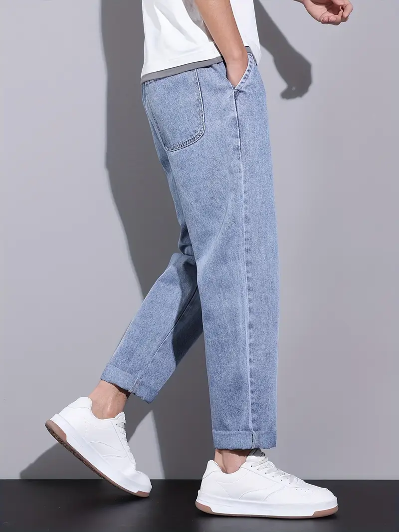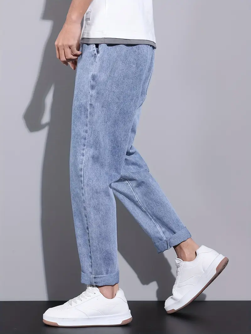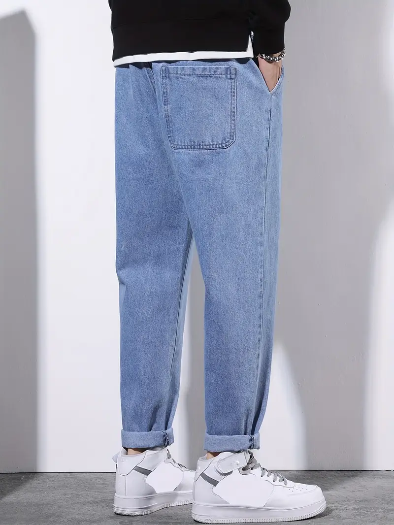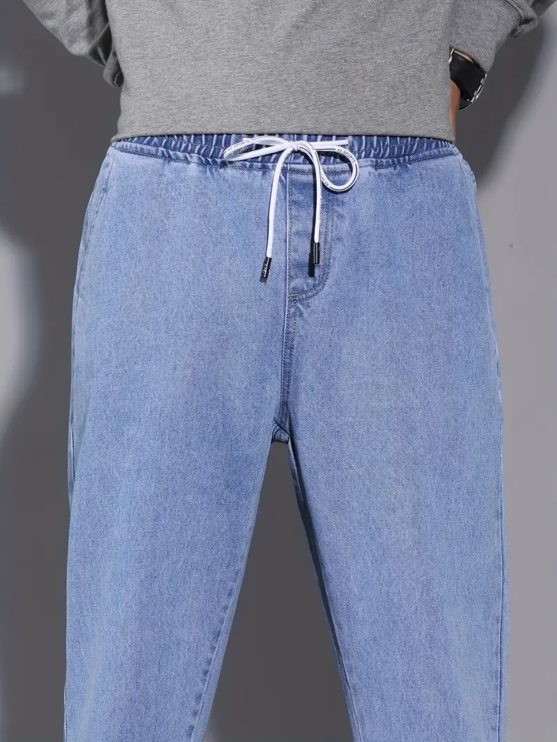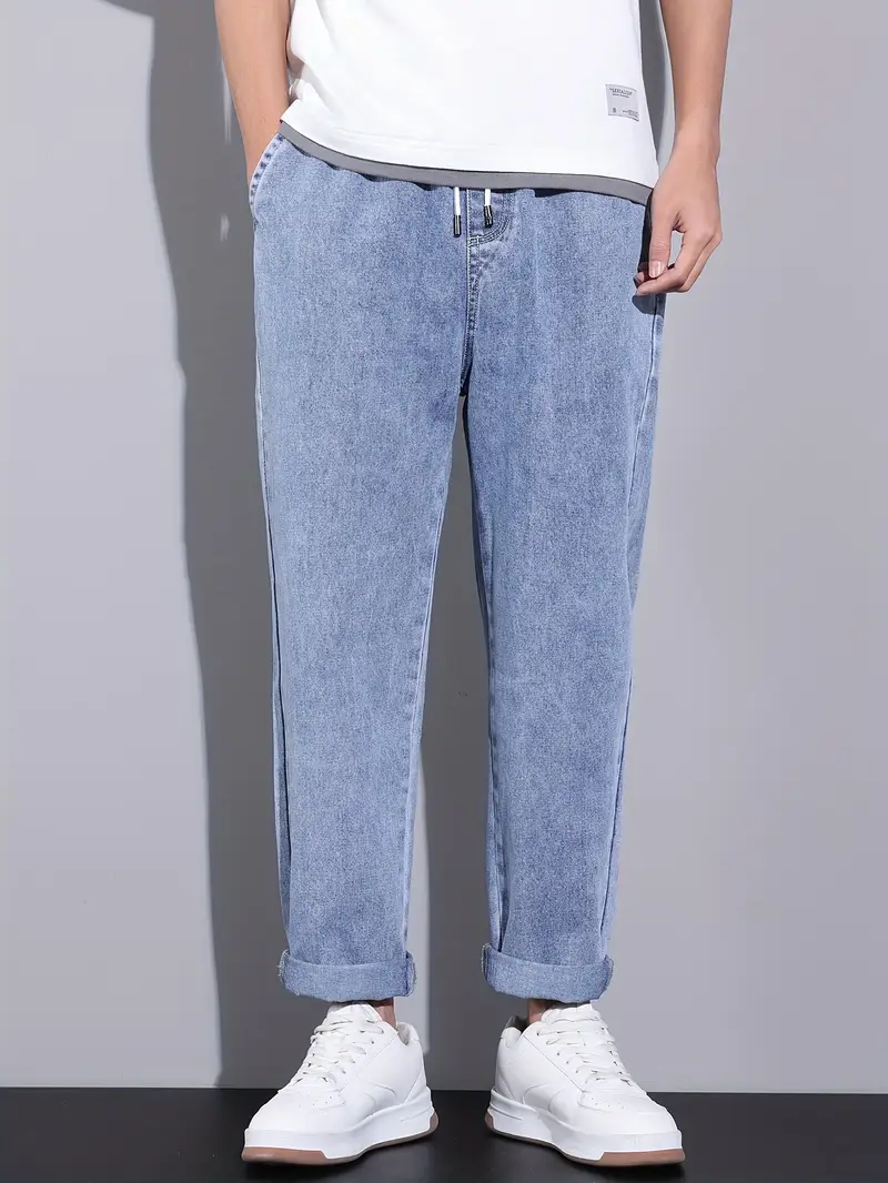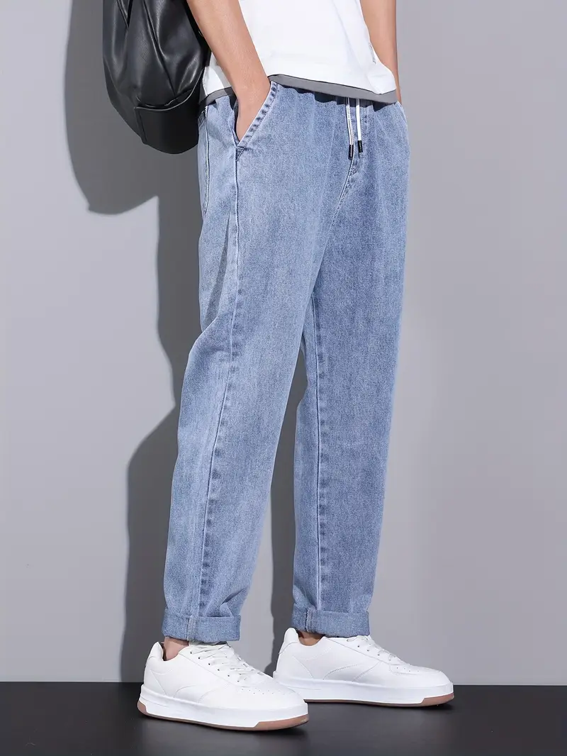 Տղամարդու պարանով ուղիղ ջինս ունիվերսալ ոճ բոլոր սեզոնների նորաձև տաբատներ, ազատ ջինսեր|տղամարդկանց նորաձև տաբատներ փայլուն գործվածք