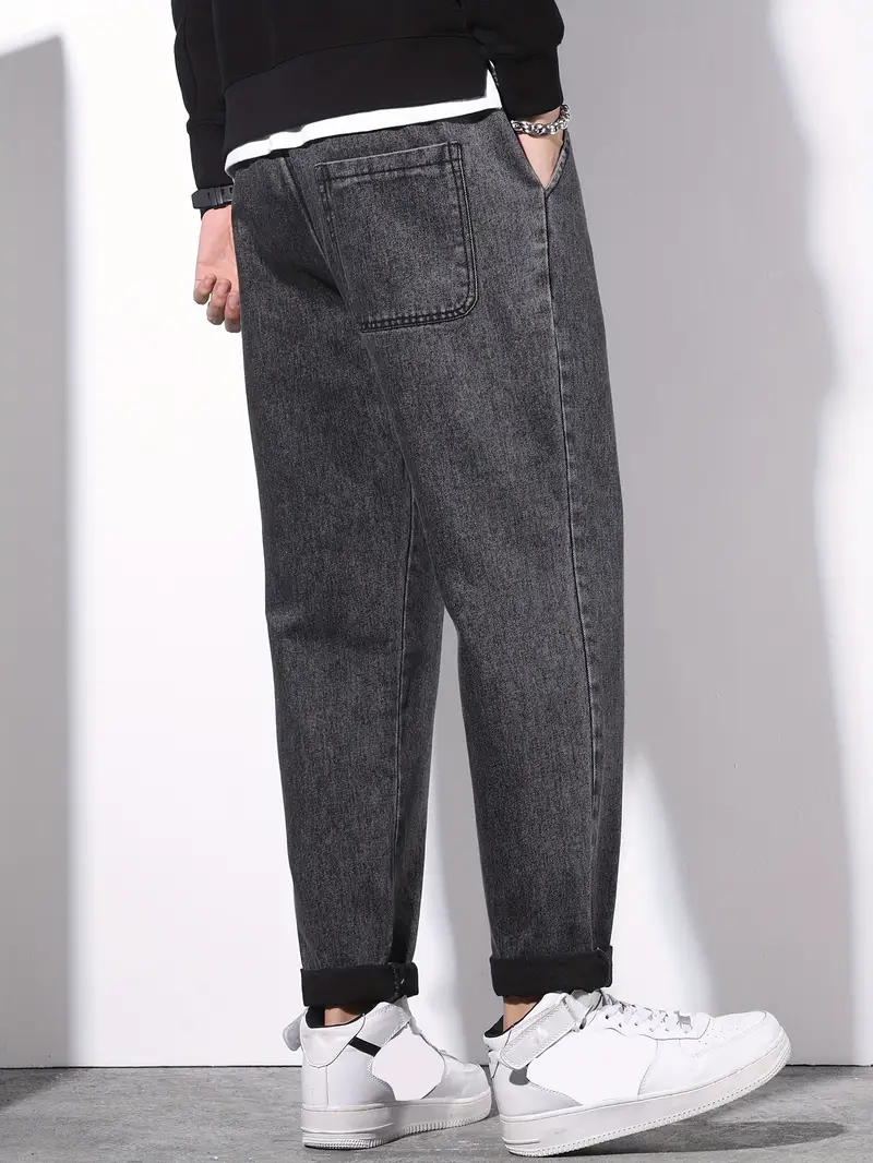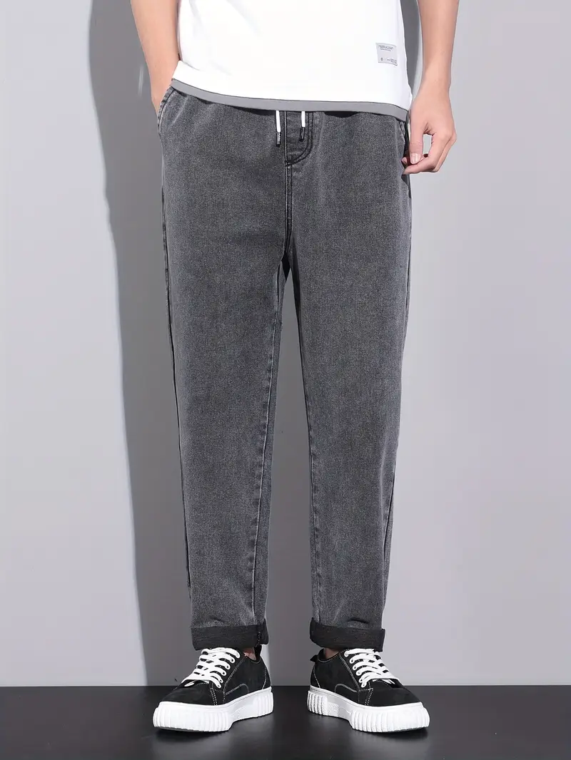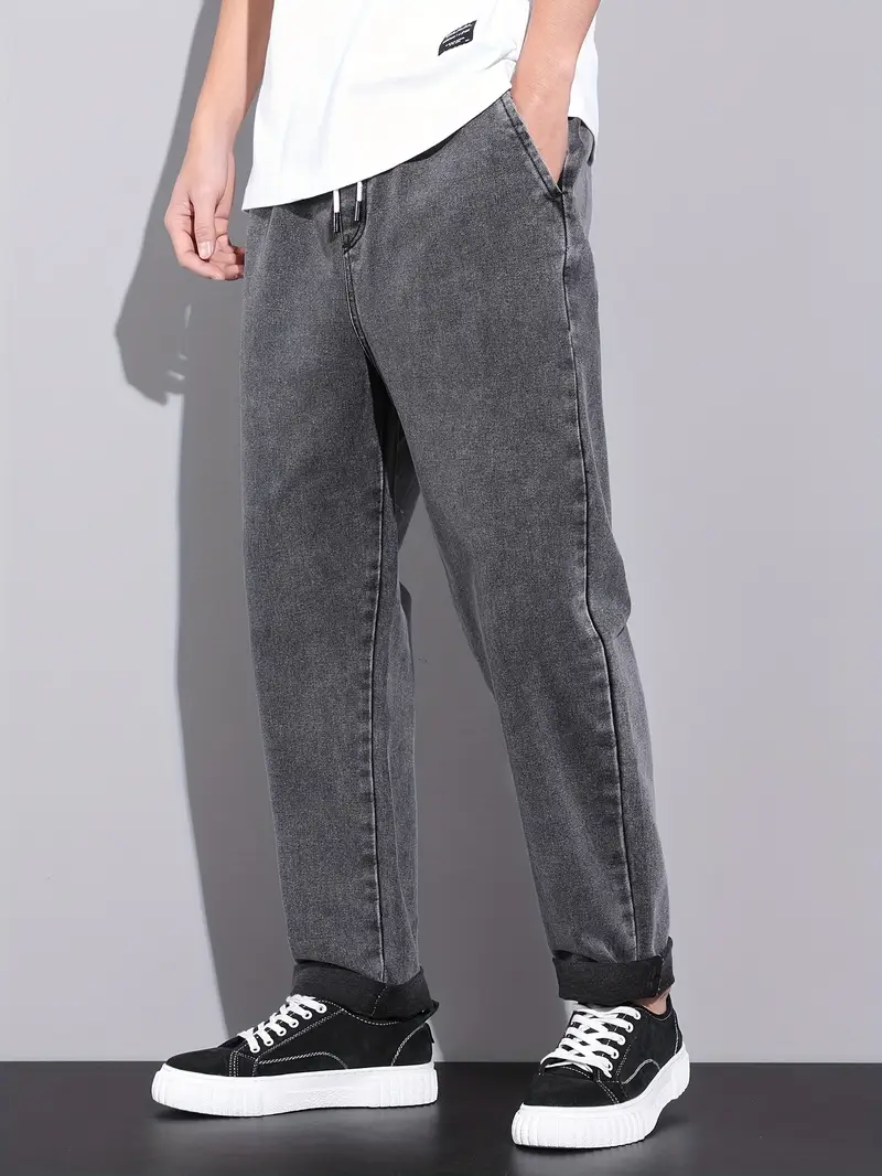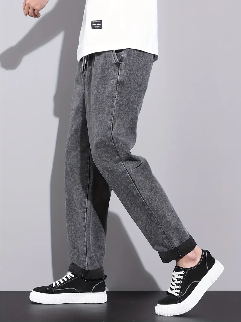 Տղամարդու պարանով ուղիղ ջինս ունիվերսալ ոճ բոլոր սեզոնների նորաձև տաբատներ, ազատ ջինսեր|տղամարդկանց նորաձև տաբատներ փայլուն գործվածք