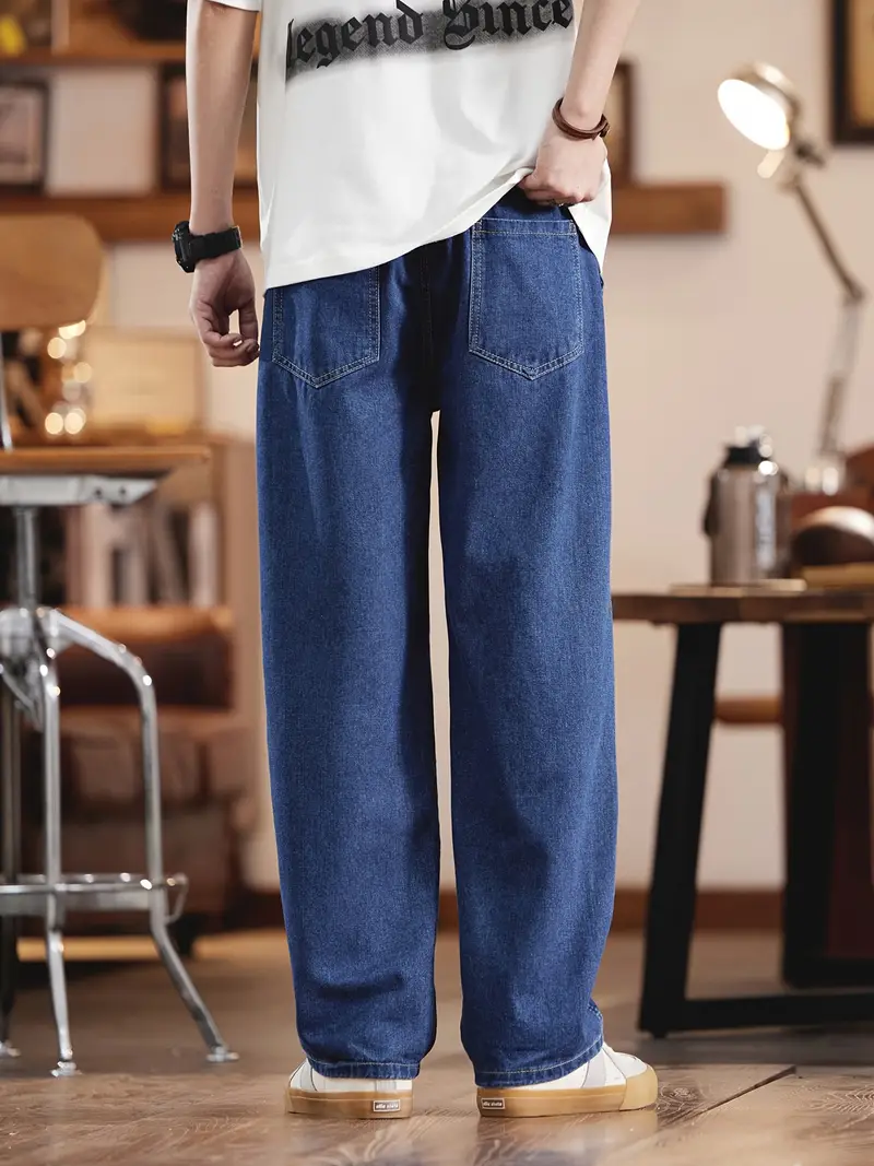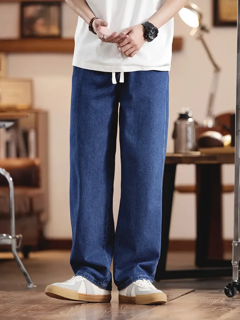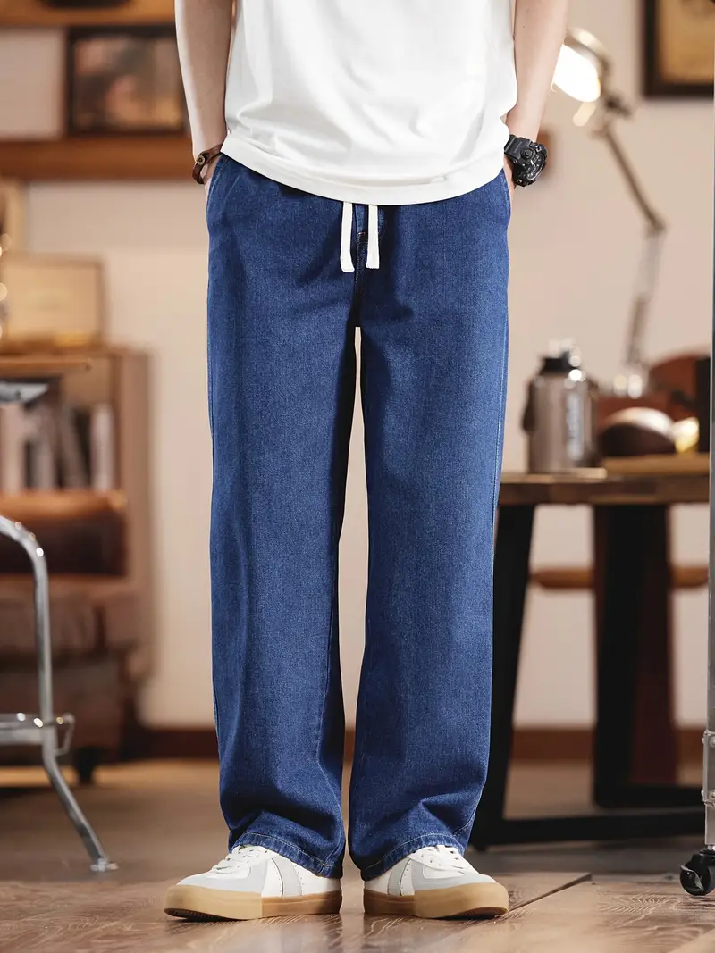 Տղամարդու ջինսե տաբատՀանգիստ տեղավորվում է միաձույլ գույնի գործվածք, ոչ ձգվող հյուսված բամբակյա խառնուրդ, ամբողջ սեզոնային հագուստ, սովորական երկարություն թելոերով ամրացվող