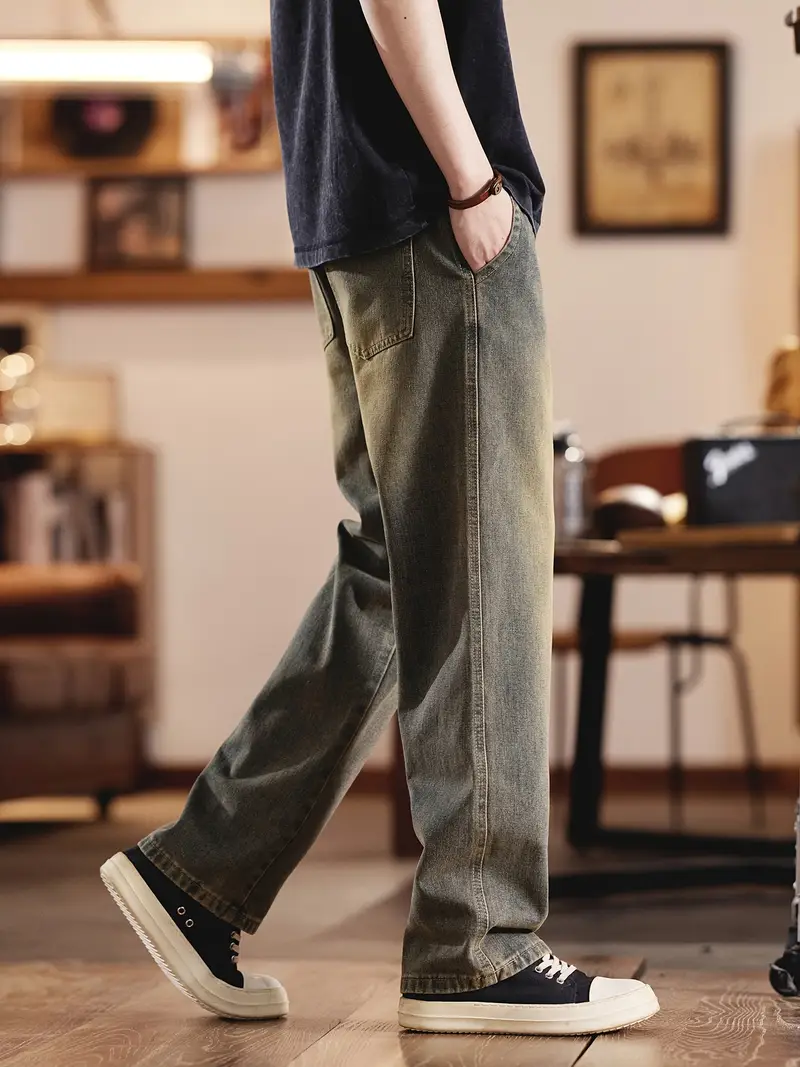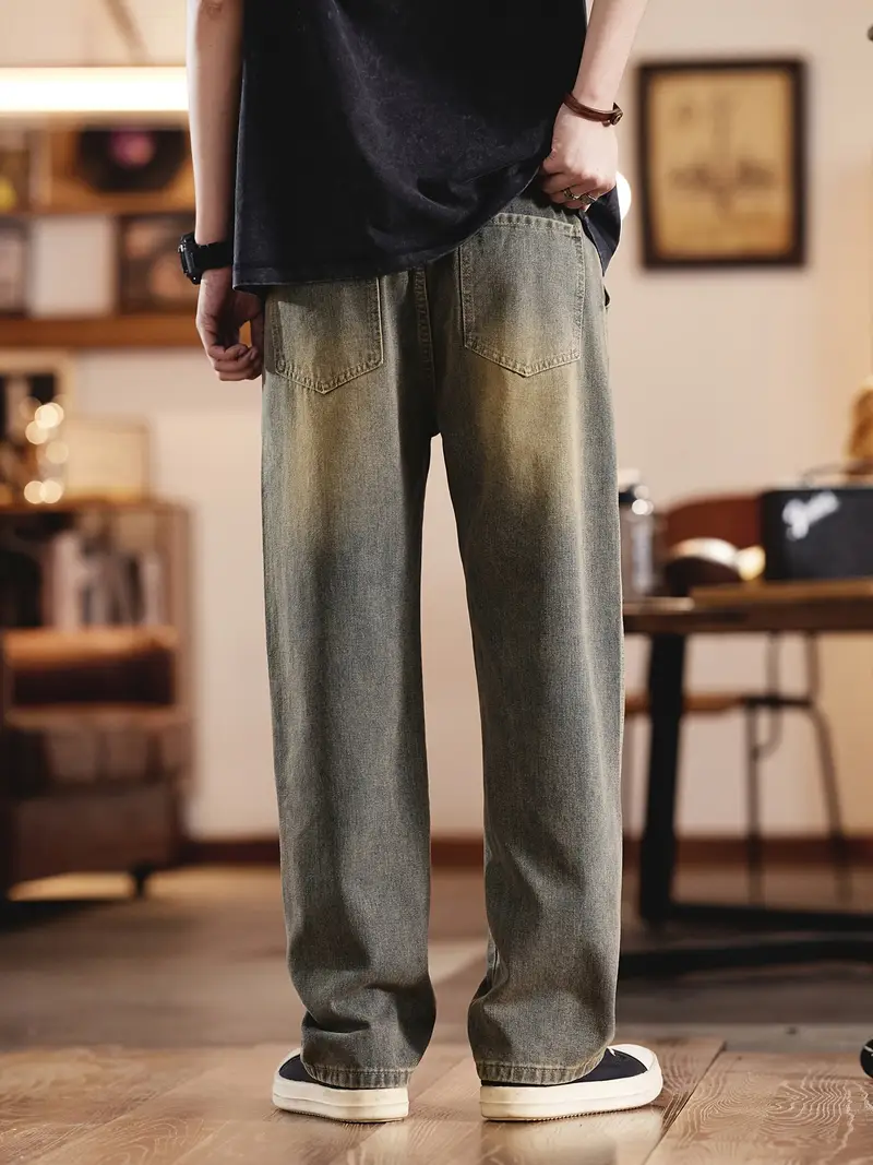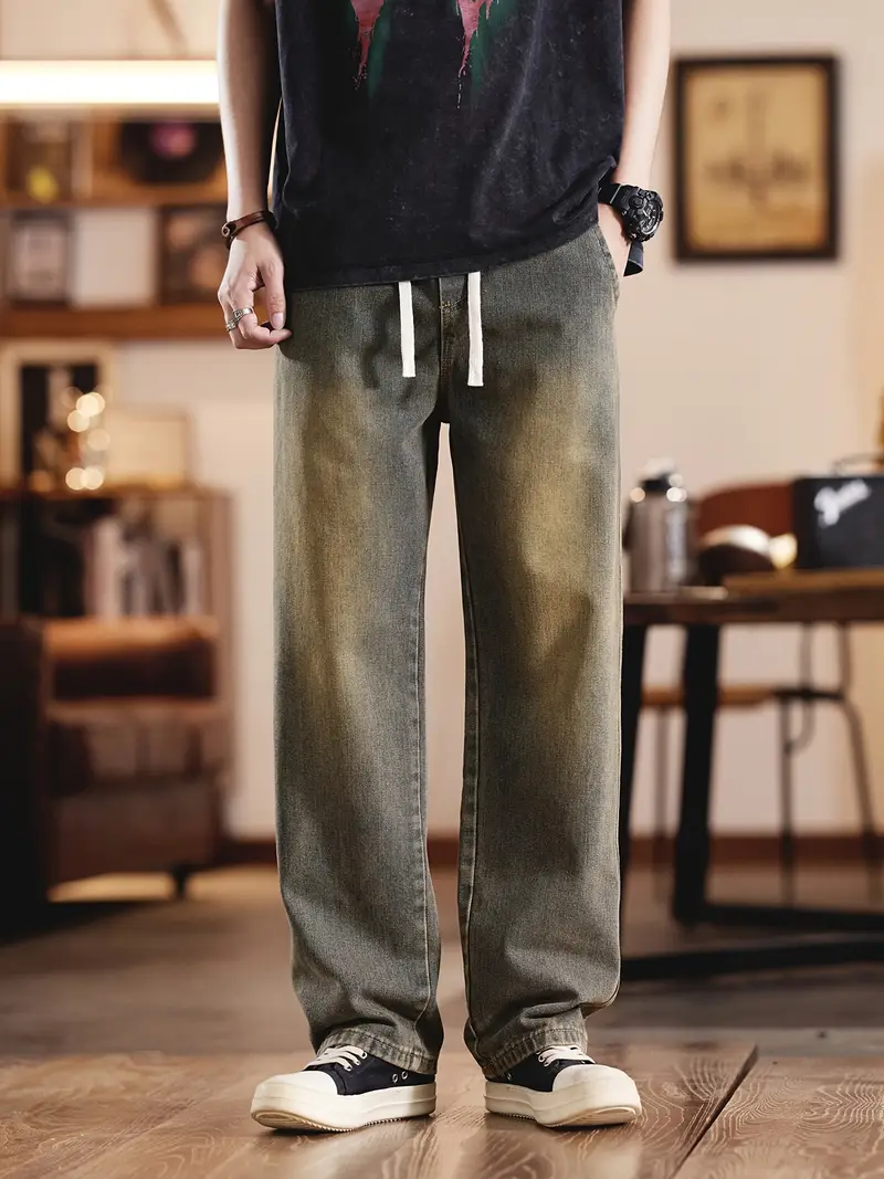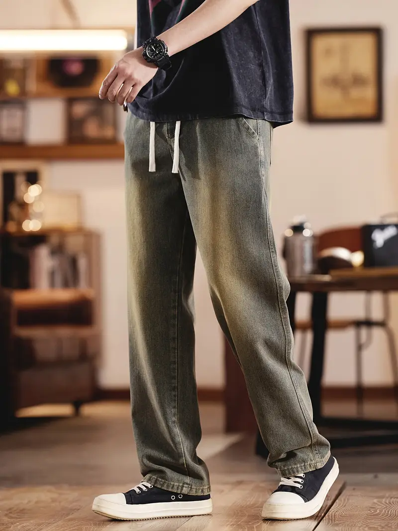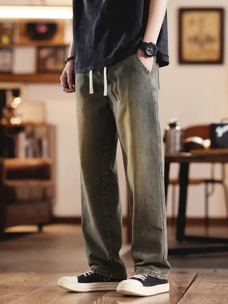 Տղամարդու ջինսե տաբատՀանգիստ տեղավորվում է միաձույլ գույնի գործվածք, ոչ ձգվող հյուսված բամբակյա խառնուրդ, ամբողջ սեզոնային հագուստ, սովորական երկարություն թելոերով ամրացվող