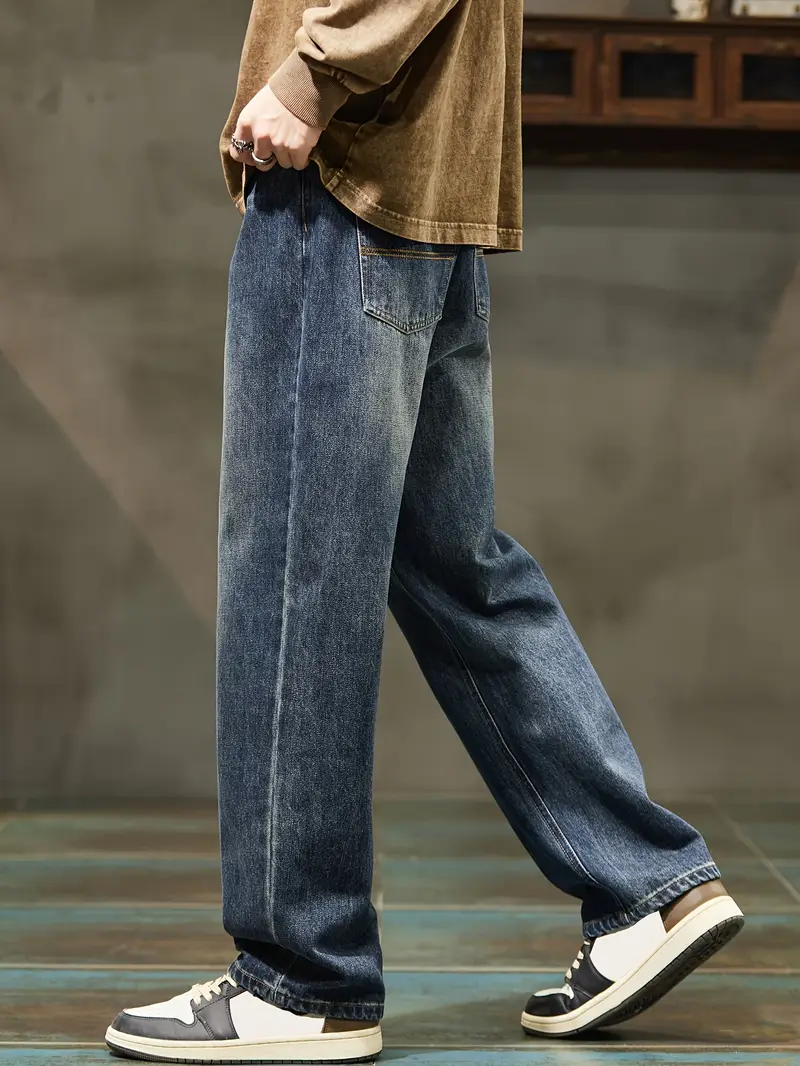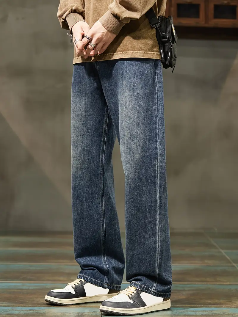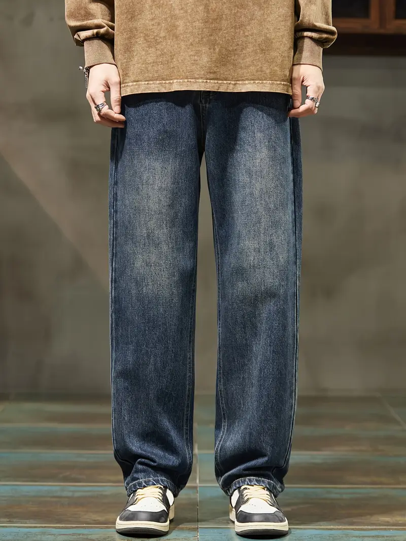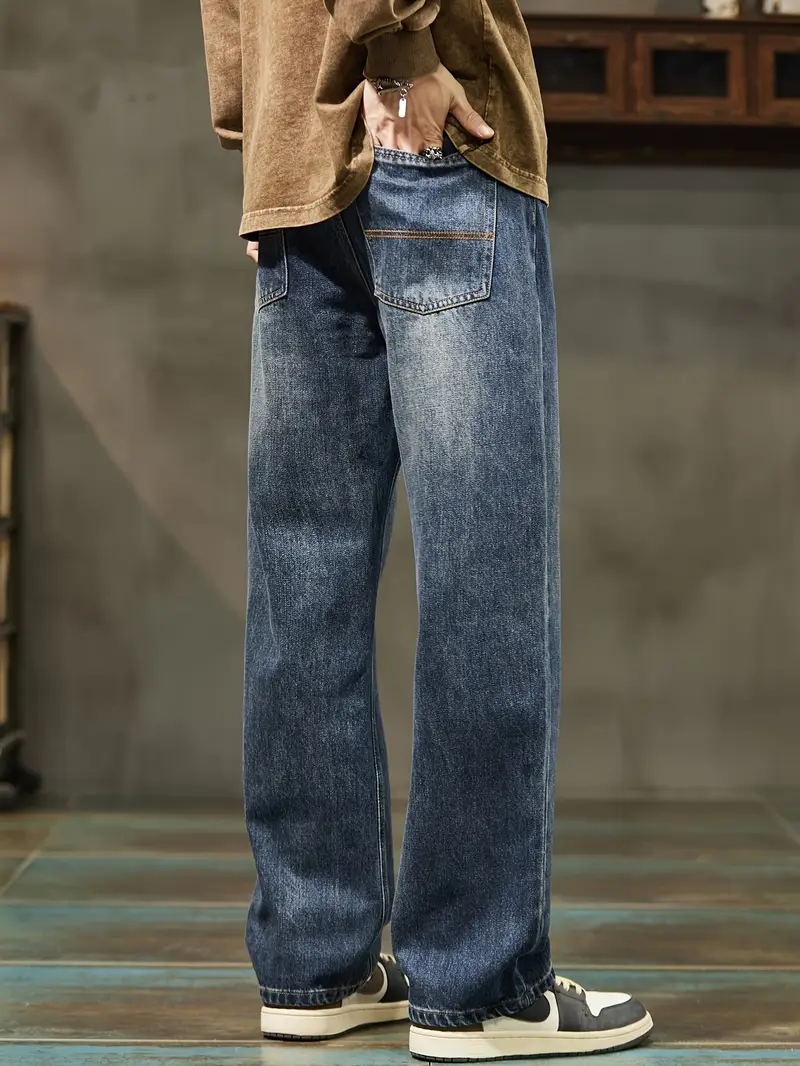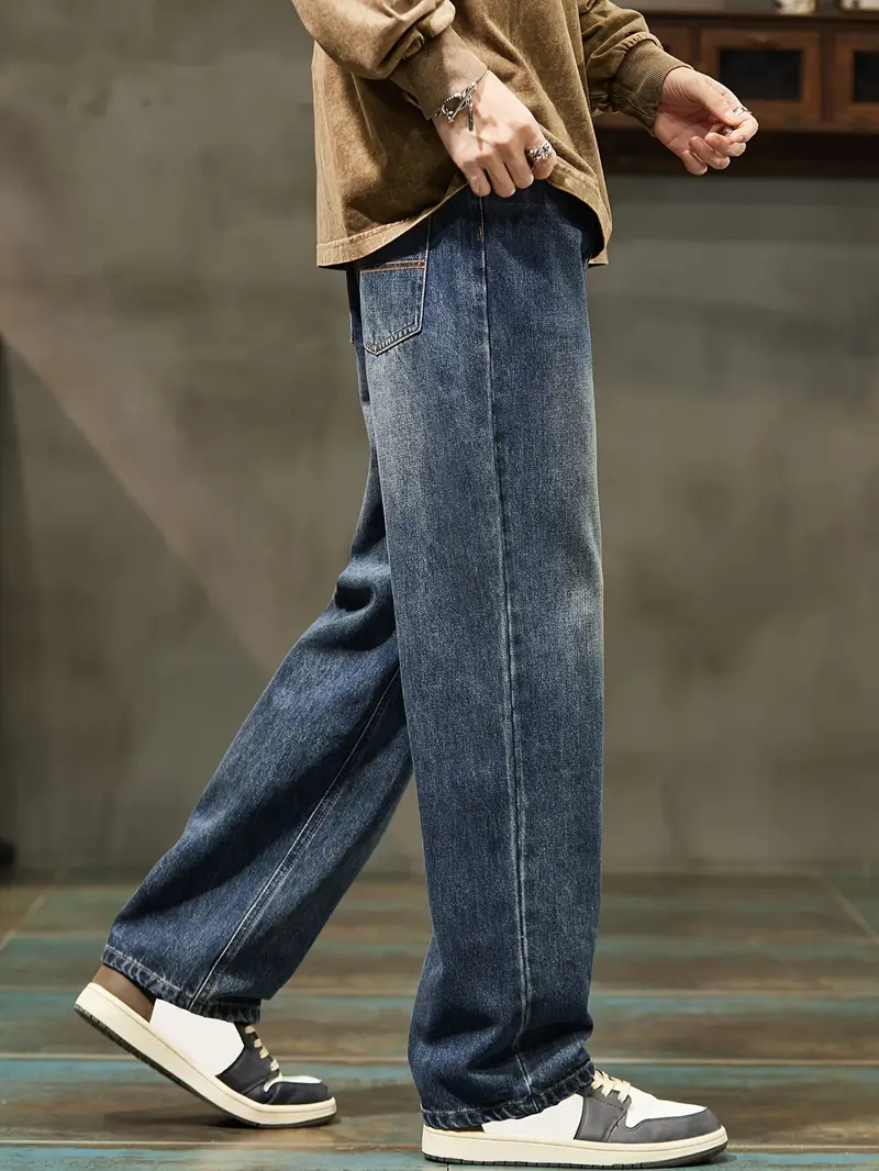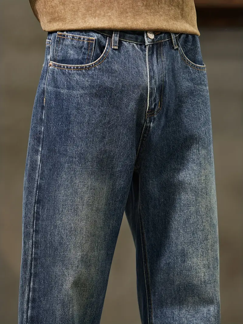 Տղամարդու ջինսե տաբատՀանգիստ տեղավորվում է միաձույլ գույնի գործվածք, ոչ ձգվող հյուսված բամբակյա խառնուրդ, ամբողջ սեզոնային հագուստ, սովորական երկարություն թելոերով ամրացվող