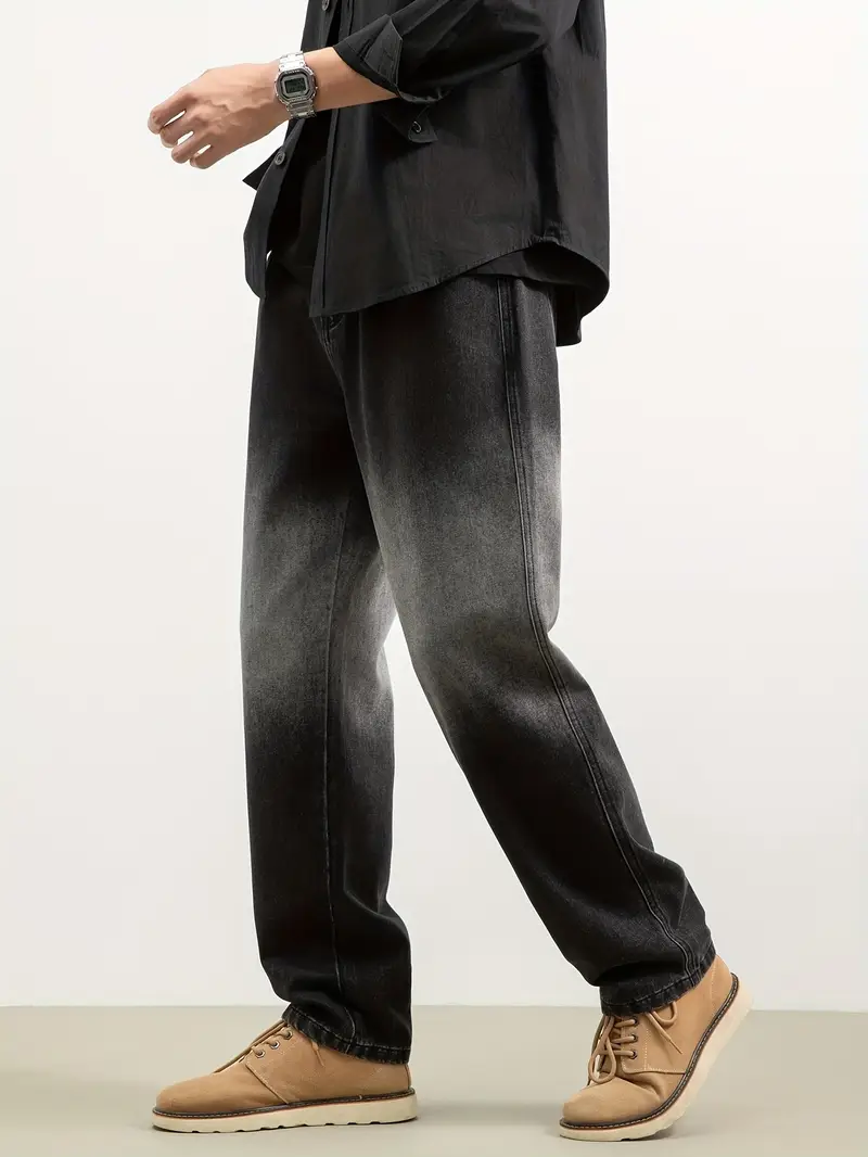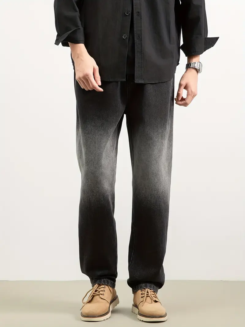 Տղամարդու առօրյա ուղիղ ջինս բամբակյա խառնուրդ, ազատ տեղավորվող միջին գոտկատեղ միագույն լվացվող կայծակաճարմանդ ջինսե տաբատ աշնանային (առանց ձգվող կանոնավոր երկարության)