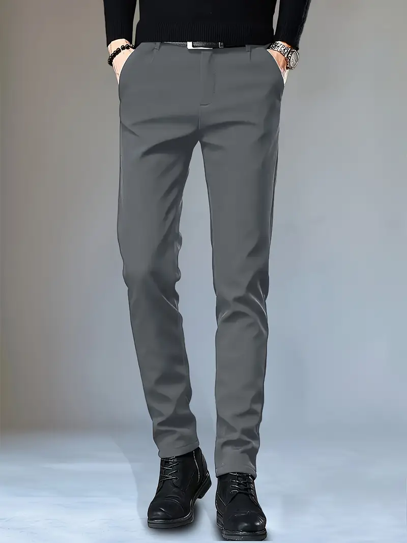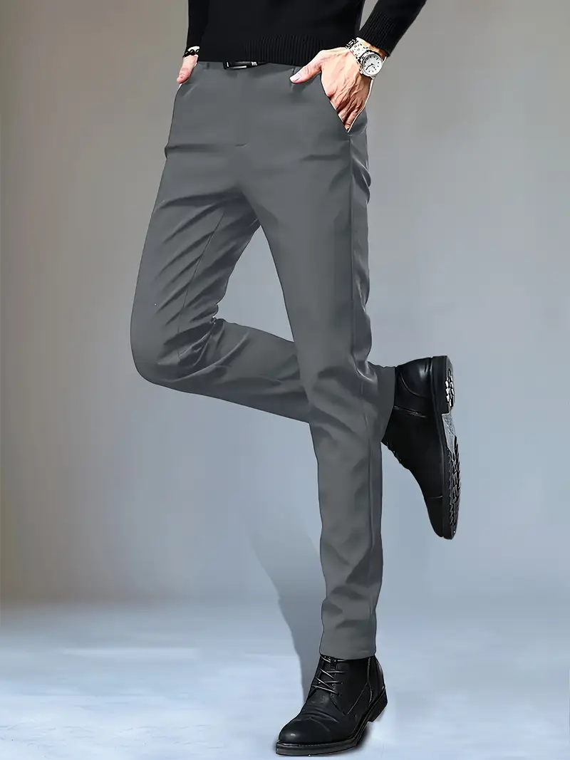 Տղամարդկանց Slim Fit Business Casual տաբատ՝ բազմակողմանի միաձույլ գույնի, ձգվող գործվածք, մեքենայով լվացվող