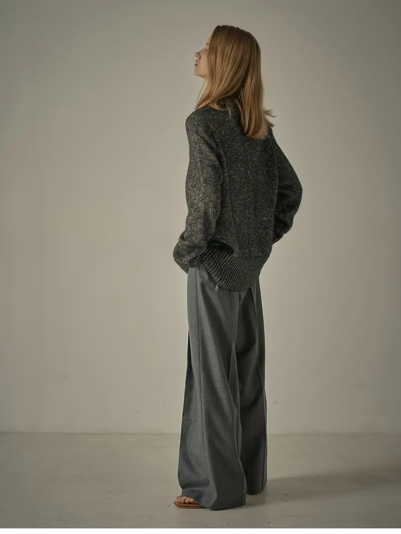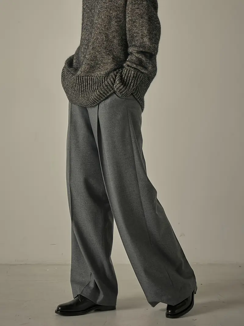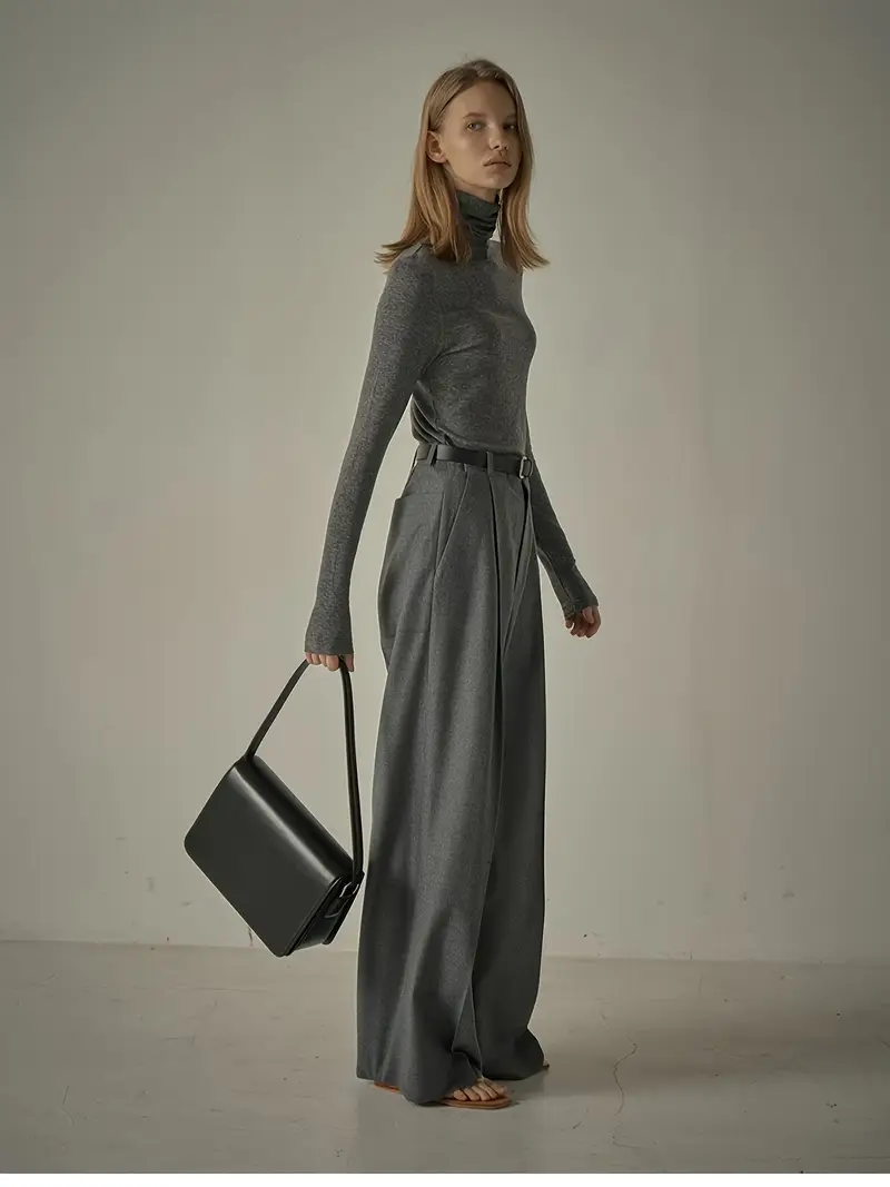 Նրբագեղ մոխրագույն կանացի բարձր գոտկատեղով ուղիղ կոստյում շալվար - Chic Wide Leg Design Պոլիեսթեր մեքենայով լվացվող գոտին անհրաժեշտ չէ, կատարյալ գրասենյակային և ամենօրյա հագուստի համար գրասենյակային տաբատներ|Բարձր գոտկատեղով|հարթ գործվածք