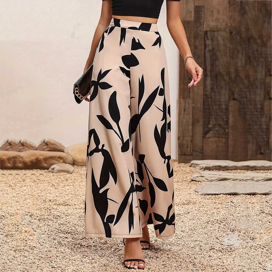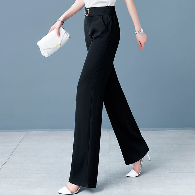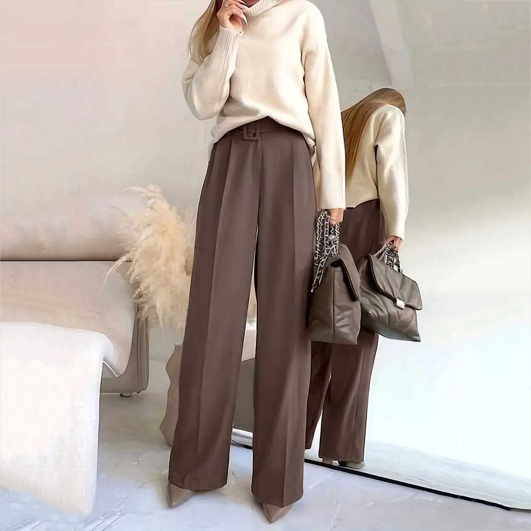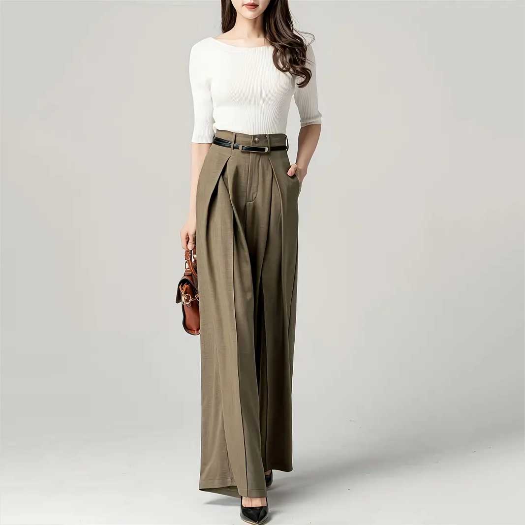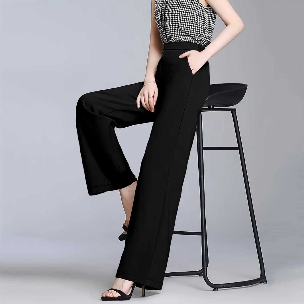Կանացի Լայն ոտքով պարզ տաբատ, էլեգանտ բարձր գոտկատեղով գրասենյակի և աշխատանքի համար