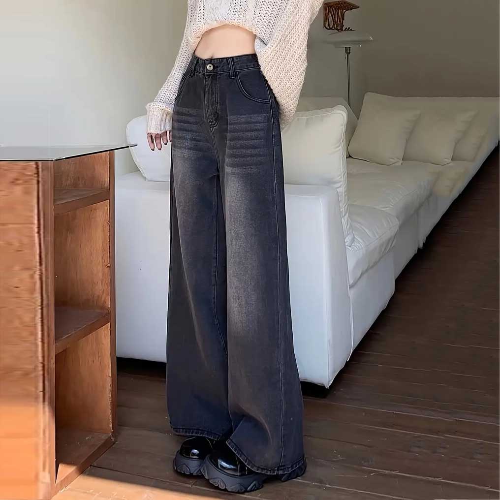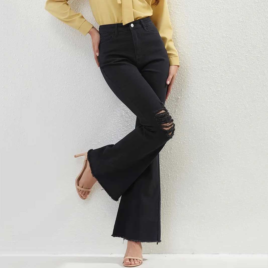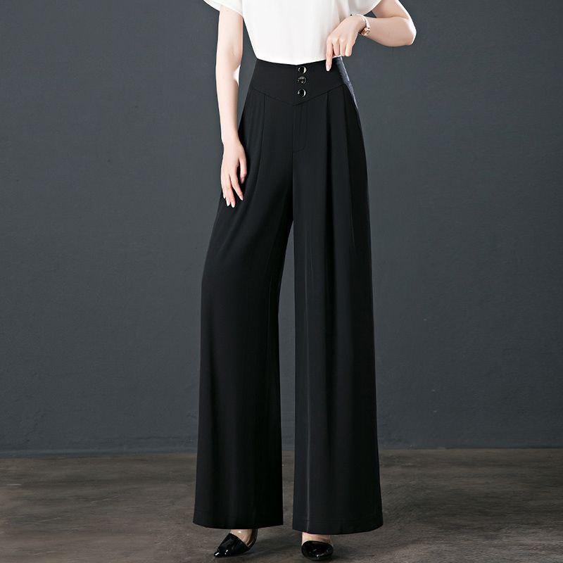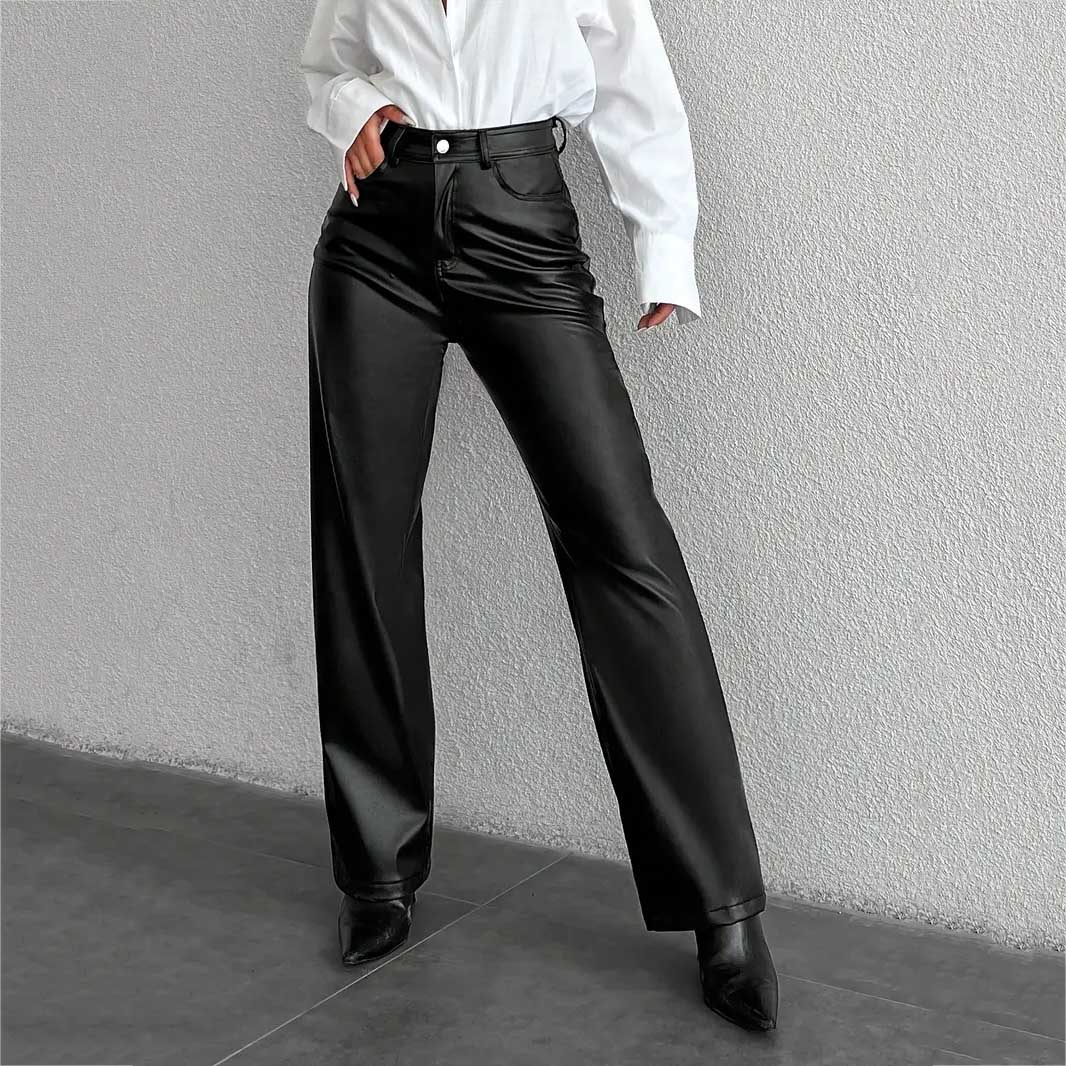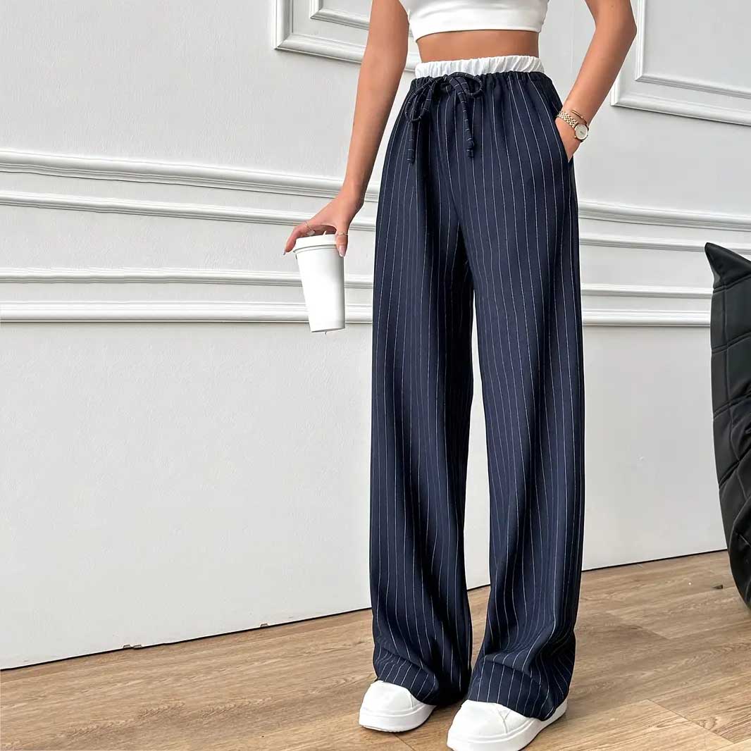 Կանացի Լայն ոտքով պարզ տաբատ, էլեգանտ բարձր գոտկատեղով գրասենյակի և աշխատանքի համար