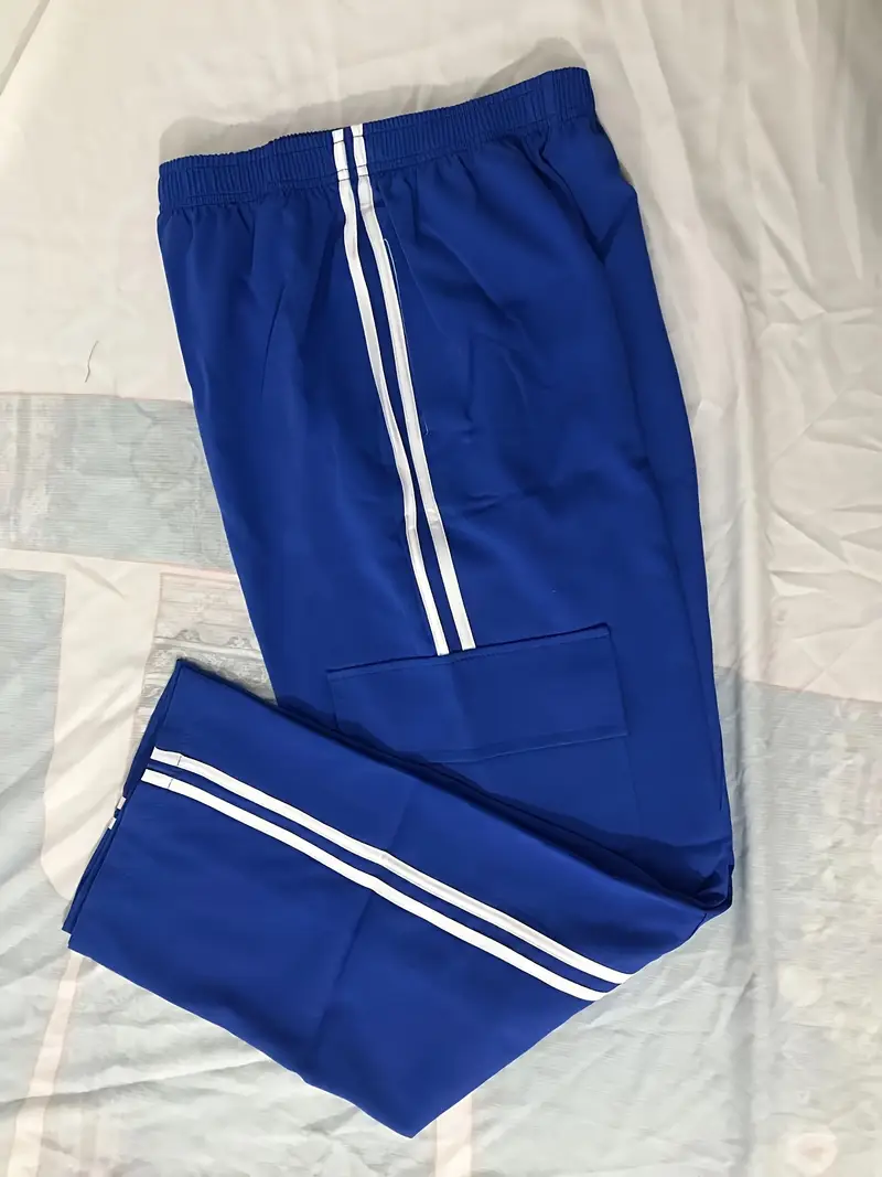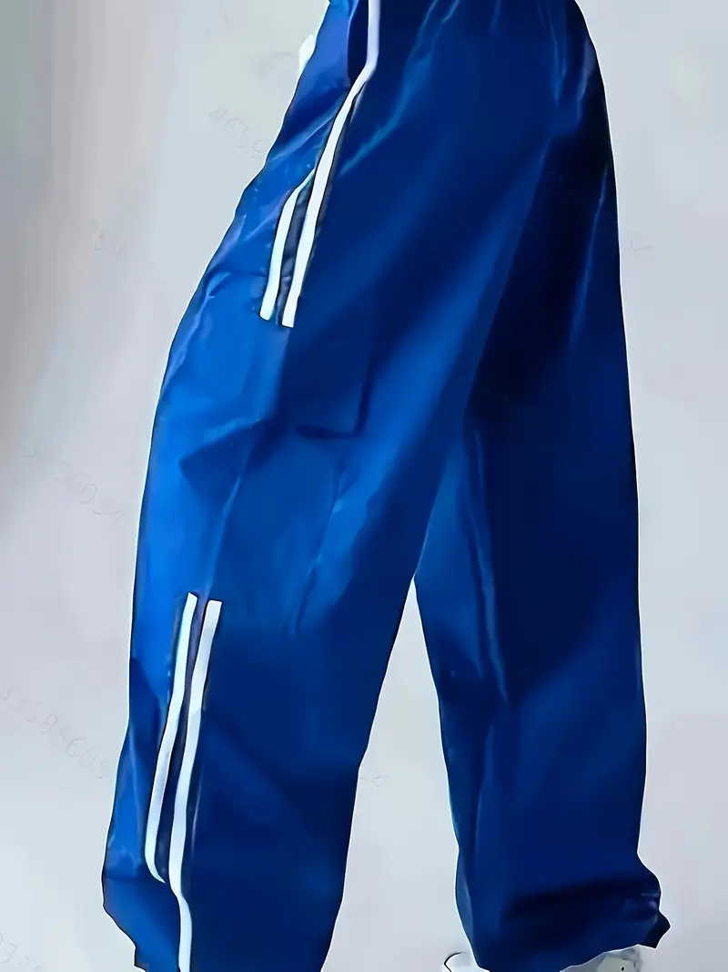 Կանացի սպորտային առօրյա բարձր գոտկատեղով լայն տաբատ՝ կողքերին սպիտակ գծերով, էլաստիկ կարգո գրպաններով։