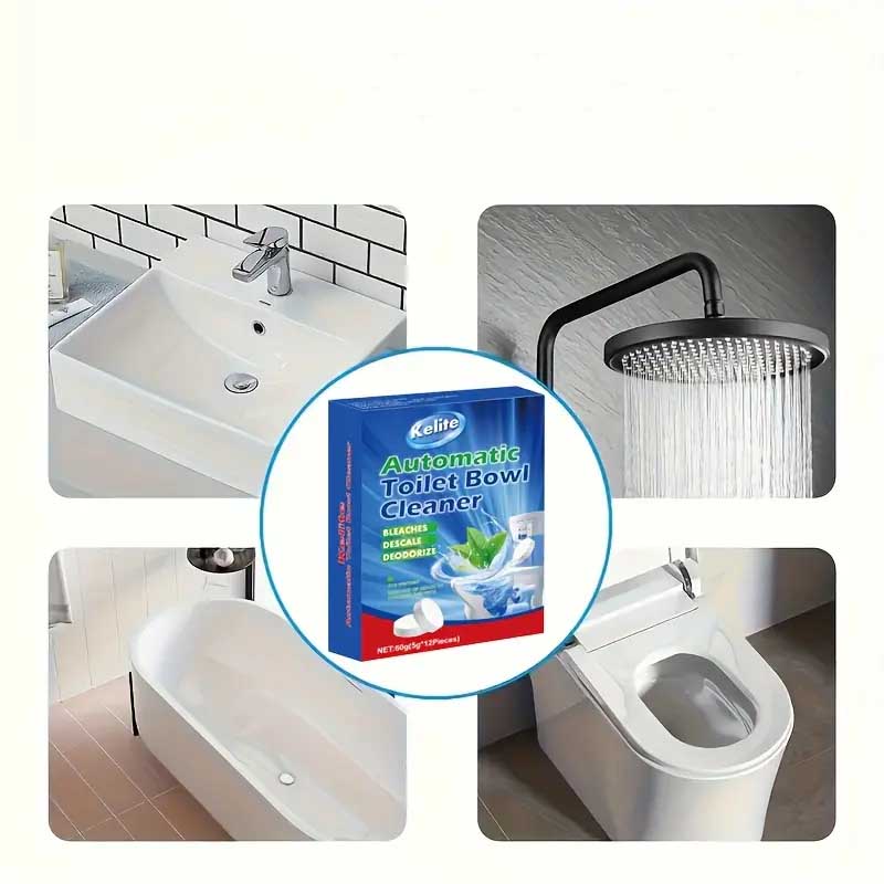 12 փաթեթ Kelite ավտոմատ զուգարան մաքրող հաբեր Կերամիկական անվտանգ հոտազերծիչ, որը վերացնում է մեզի բծերը և հոտը 1-10 լ տարողությամբ լոգարանի մաքրման հաբեր
