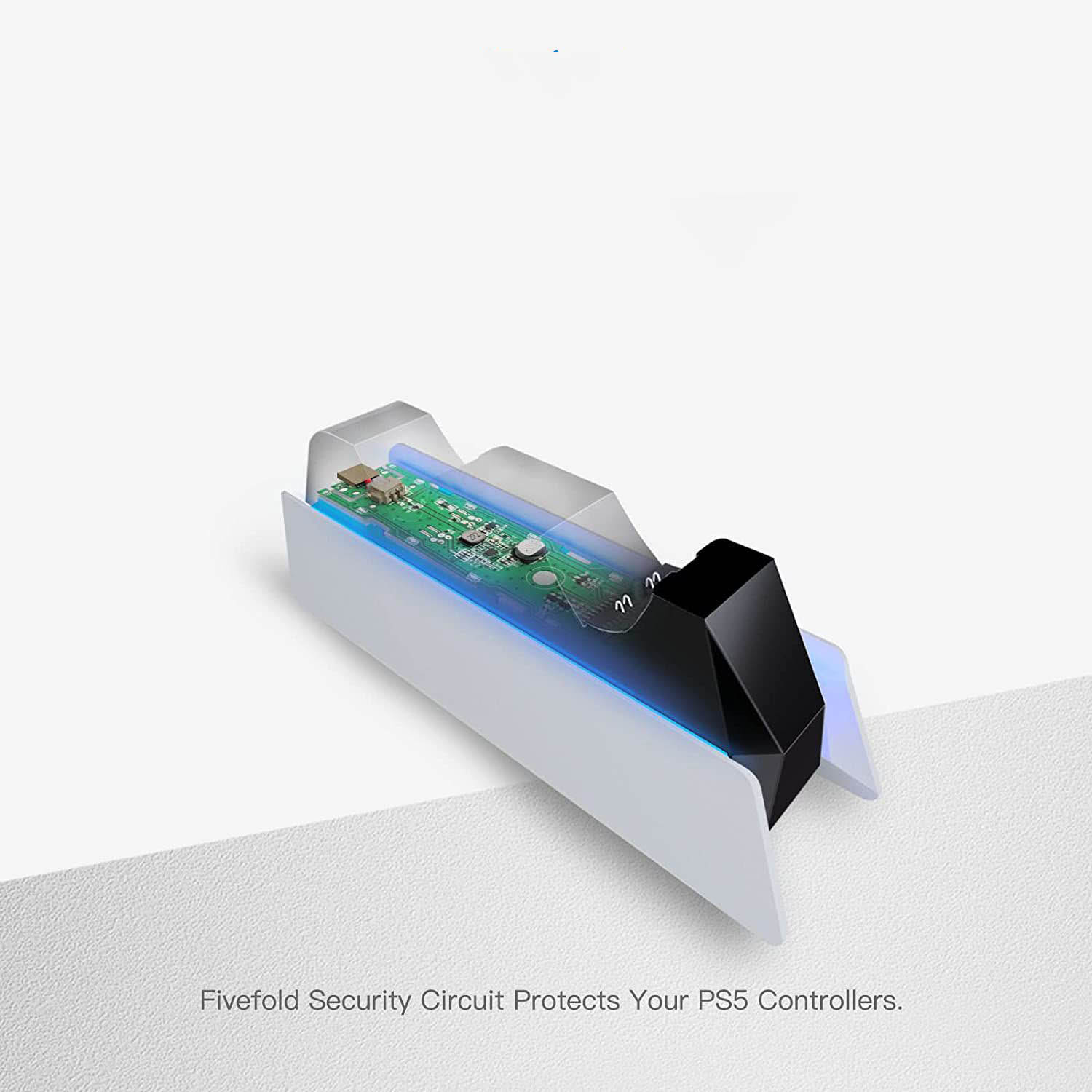 PS 5 հեռակառավարիչի լիծքավորիչ միաժամանակյա 2 կարգավորիչի համար պաշտպանություն հոսանքից ստատիկ պաշտպանվածություն լիծքավորման ժամանակ լուսային ցուցիչ