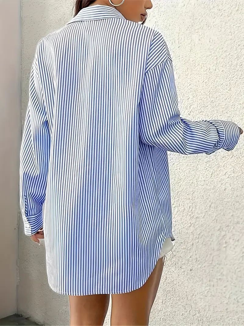 2025 Frontier Նոր թեժ վաճառք Կանանց ուսերի վրայով երկարաթև գծավոր վերնաշապիկ, ազատ, ամենօրյա վերնաշապիկ