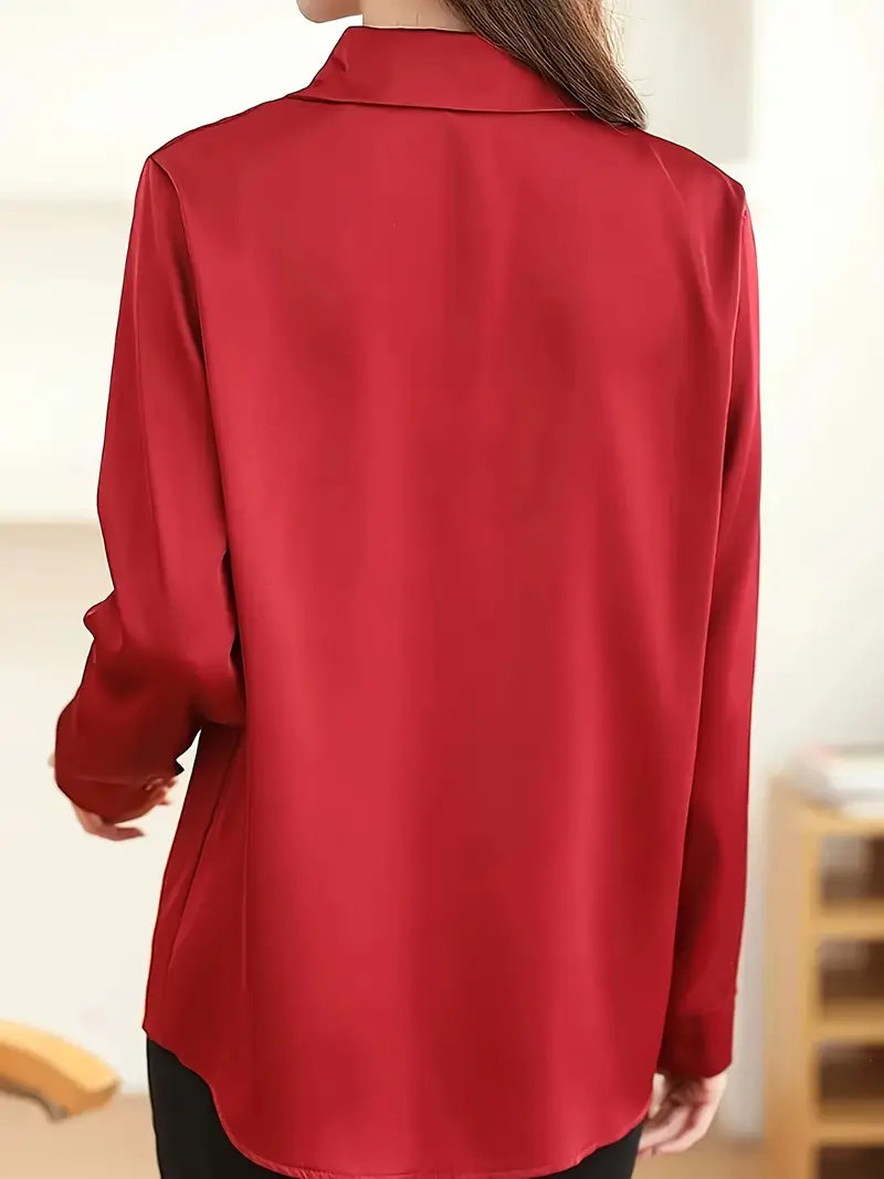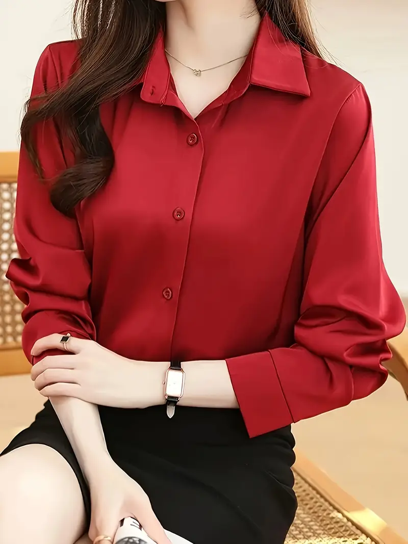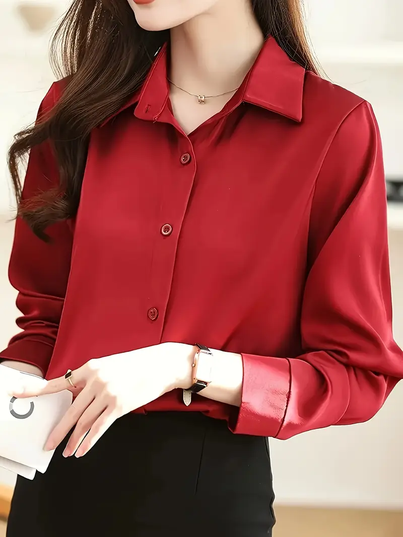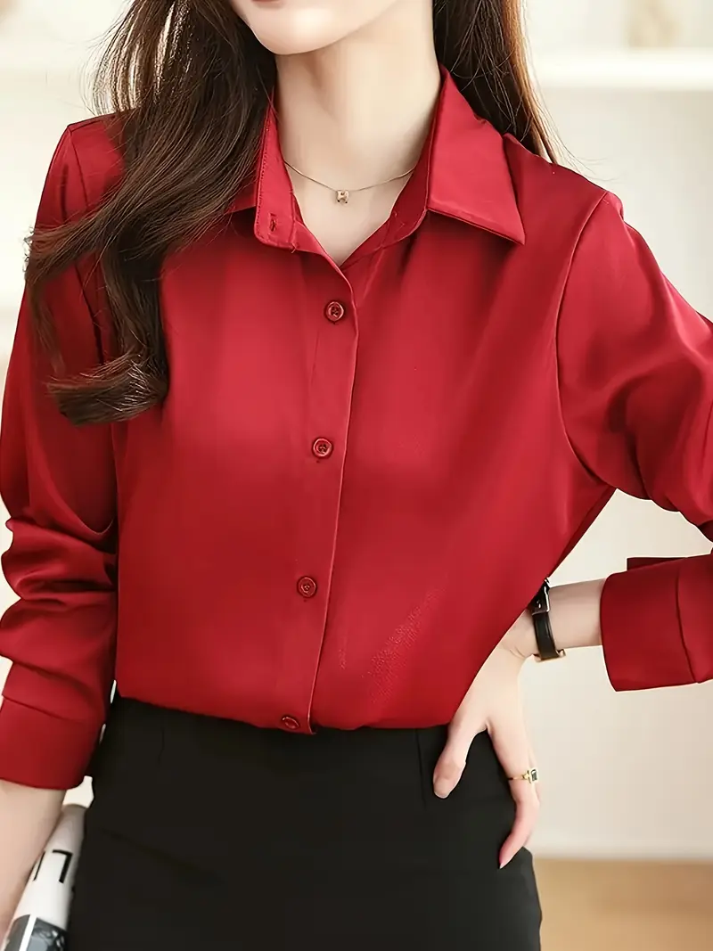 Միաձույլ գույնի առջևի կոճակով վերնաշապիկ Նրբագեղ երկարաթև վերնաշապիկ գարնանային աշնանային կանացի հագուստի համար
