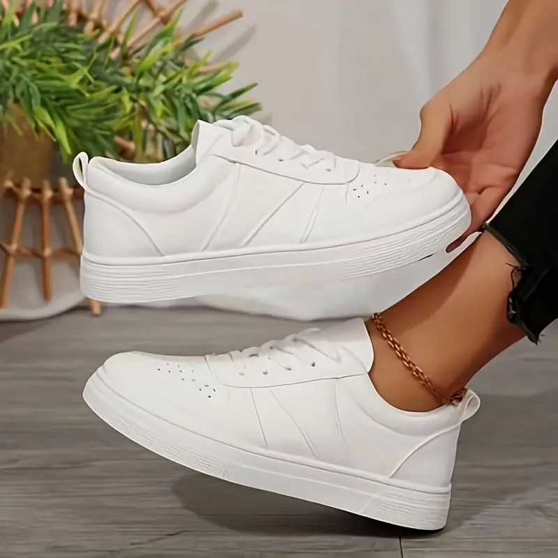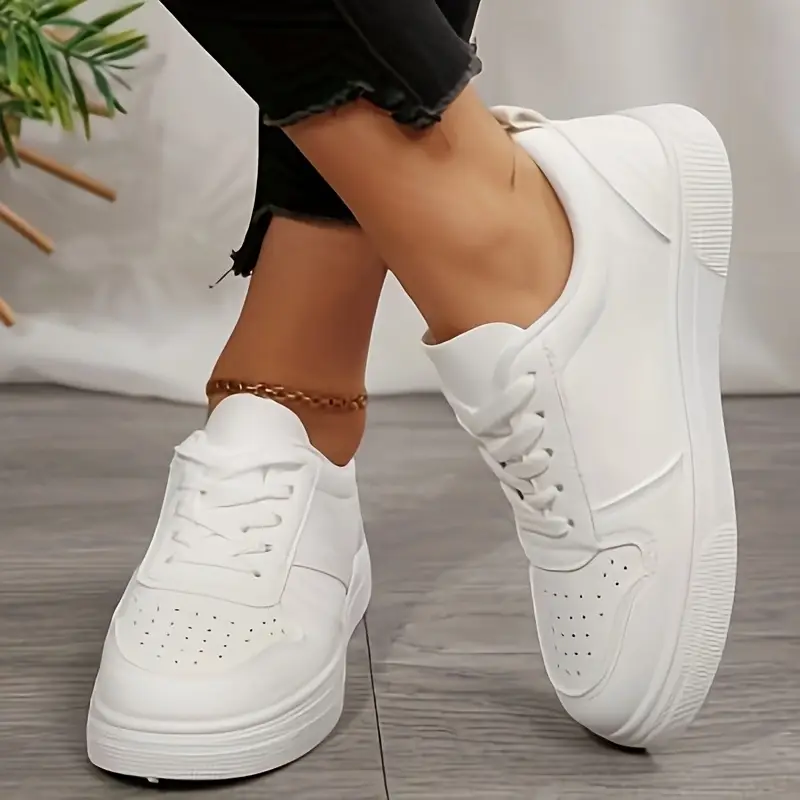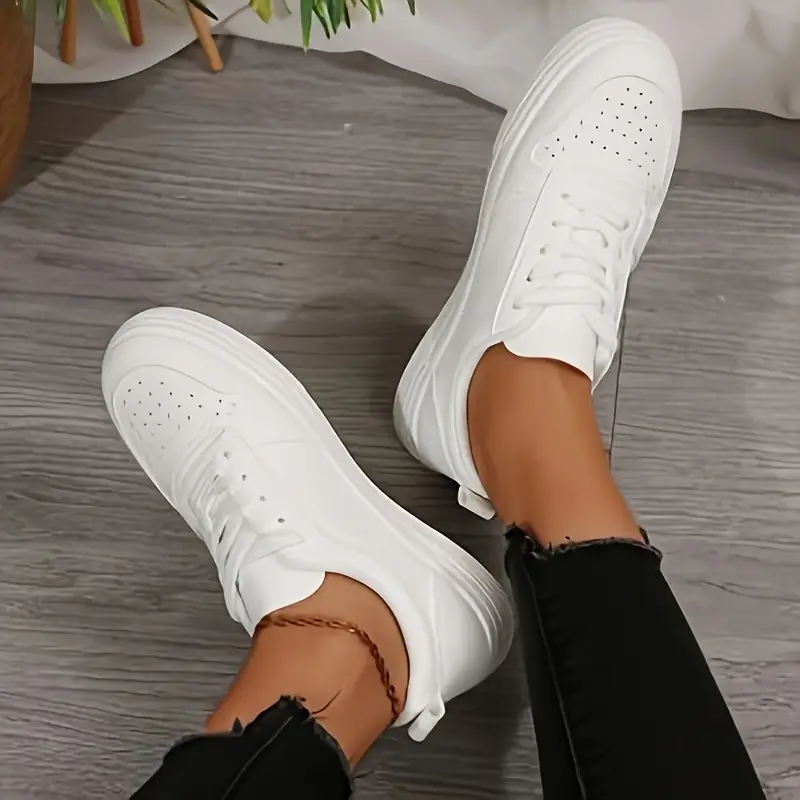 Կանացի բազմակողմանի ժանյակավոր սպորտային կոշիկներ բոլոր սեզոնների համար՝ դասական սպիտակ, շնչող գործվածքի աստառով, դիմացկուն ռետինե տակացու, արհեստական վերնամասով
