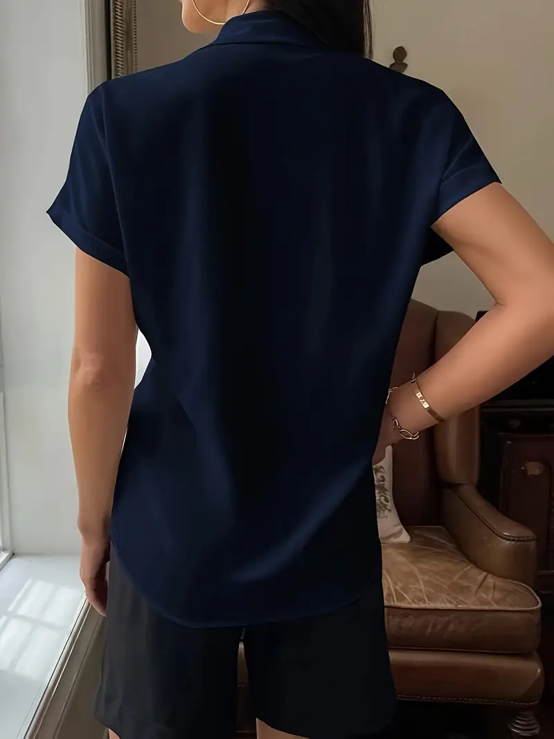 Կրծքավանդակի վրա գրպանով պարզ վերնաշապիկ, կարճ թեւերով օձիքով էլեգանտ ոճի