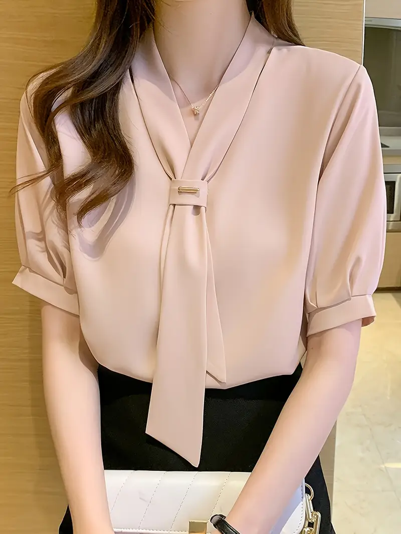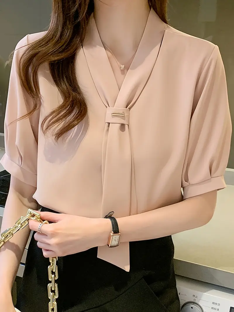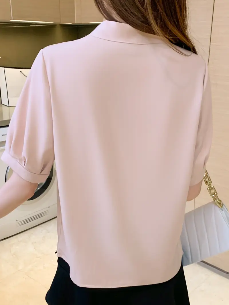 Գեղեցիկ կանացի շիֆոն բլուզ - Նորաձև կարճաթև պարանոց, միաձույլ գույնի մեքենայով լվացվող կատարյալ աշխատանքի և առօրյա հագուստի համար Ֆլանելային նորաձև խառնվածք