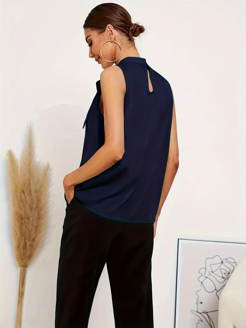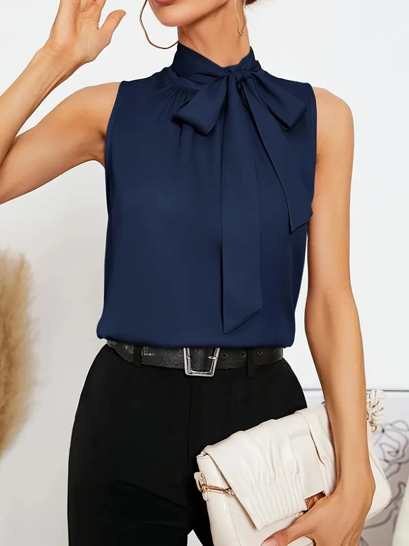 Միաձույլ վերնաշապիկ օձիքով Էլեգանտ անթև բլուզ՝ աղեղով առջևի կանացի հագուստ