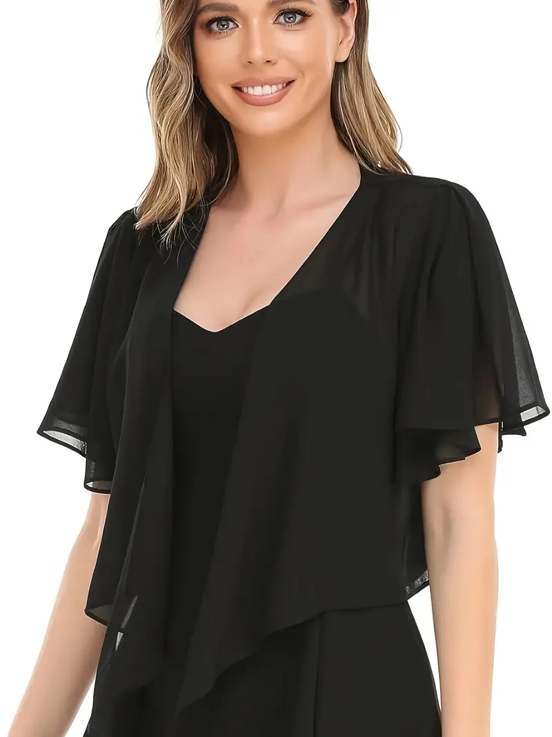 Էլեգանտ բաց կապույտ կանացի շիֆոն կարդիգան ամառային կարճաթև թափանցիկ առջևի հանգույցով բլուզ լվացքի մեքենայով լվացվող պոլիեսթեր