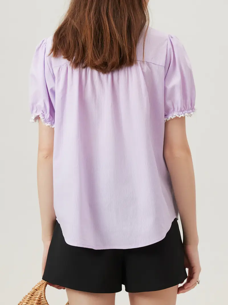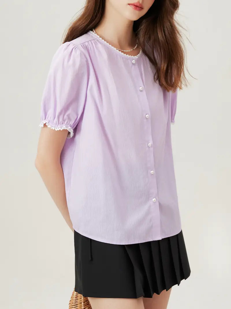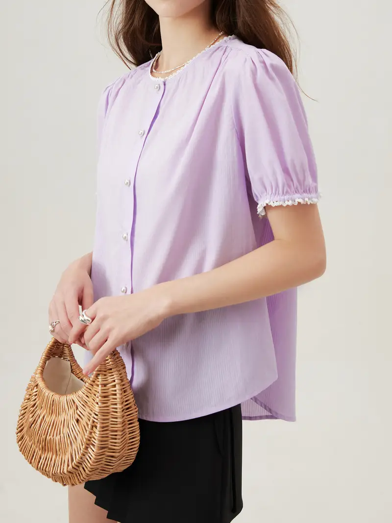 FSLE Women Casual Ամառային կարճաթև կլոր վզով վերնաշապիկ