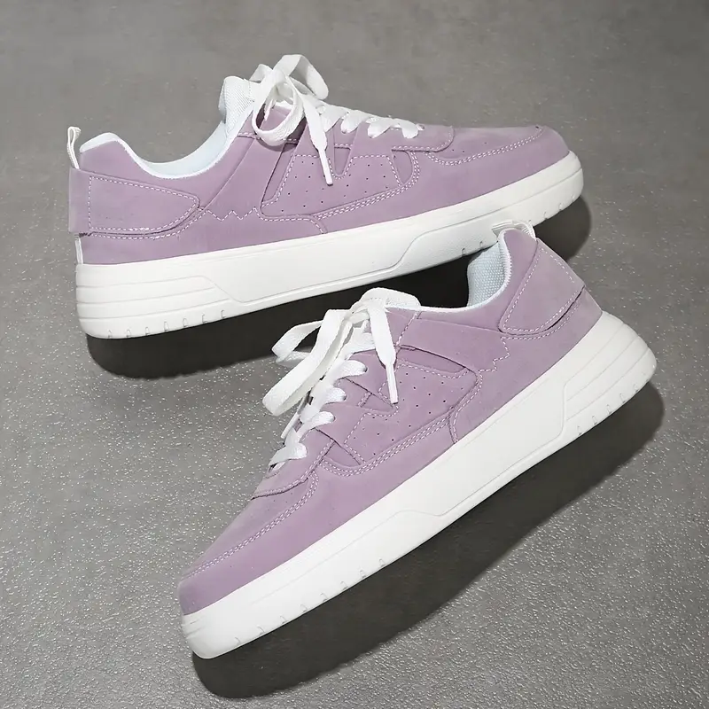 Կանացի ցածր Սքեյթբորդինգ դասական միաձույլ գույնի հարմարավետ ժանյակներով կլոր ծայր կոշիկ EVA Ներբան թեթև գործվածք աստառով։ Ամենօրյա և սպորտային կոշիկներ