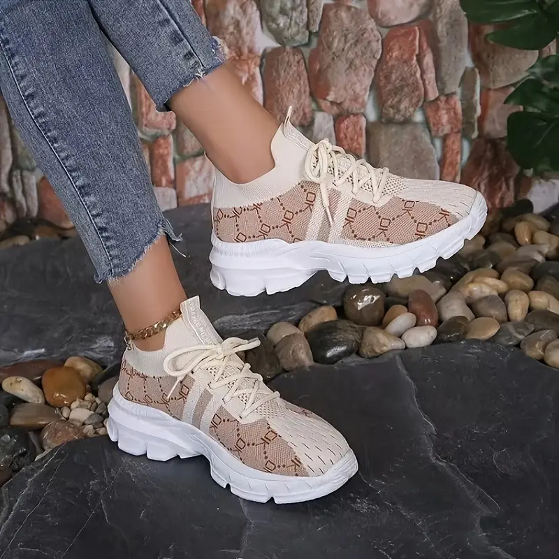 Կանացի շնչող տրիկոտաժե սպորտային կոշիկներ - թեթև ցածր վերևի վազքի կոշիկներ՝ փափուկ EVA ներբանով, հարմարավետ բոլոր սեզոնային դիզայնով, նախշերով, ժանյակով փակվող, իդեալական ամենօրյա հագուստի համար, գեղեցիկ կոշիկներ