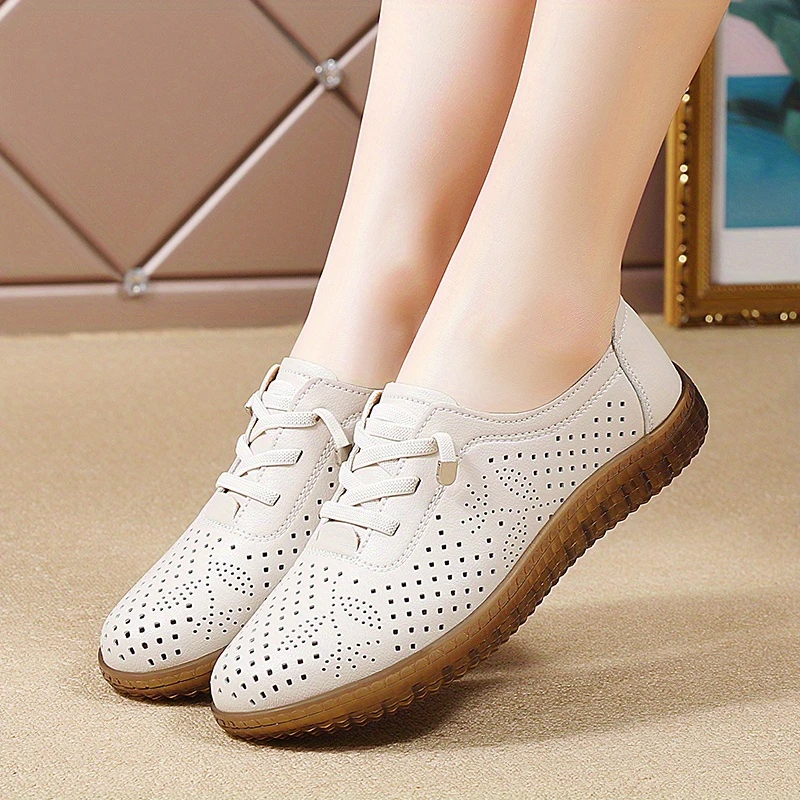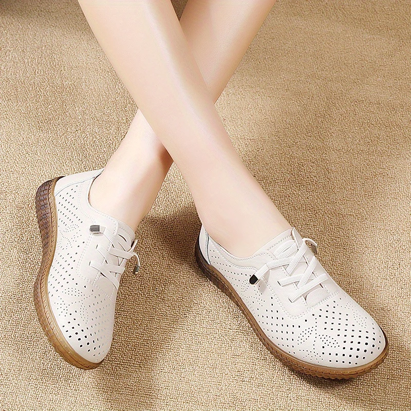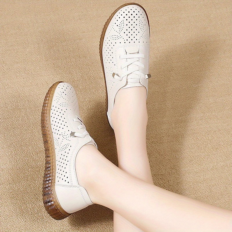 Կանացի ծակոտկեն սայթաքուն կոշիկներ Կլոր ծայրով ժանյակավոր կոշիկ շնչող արհեստական ներբան Թեթև բոլոր սեզոնների