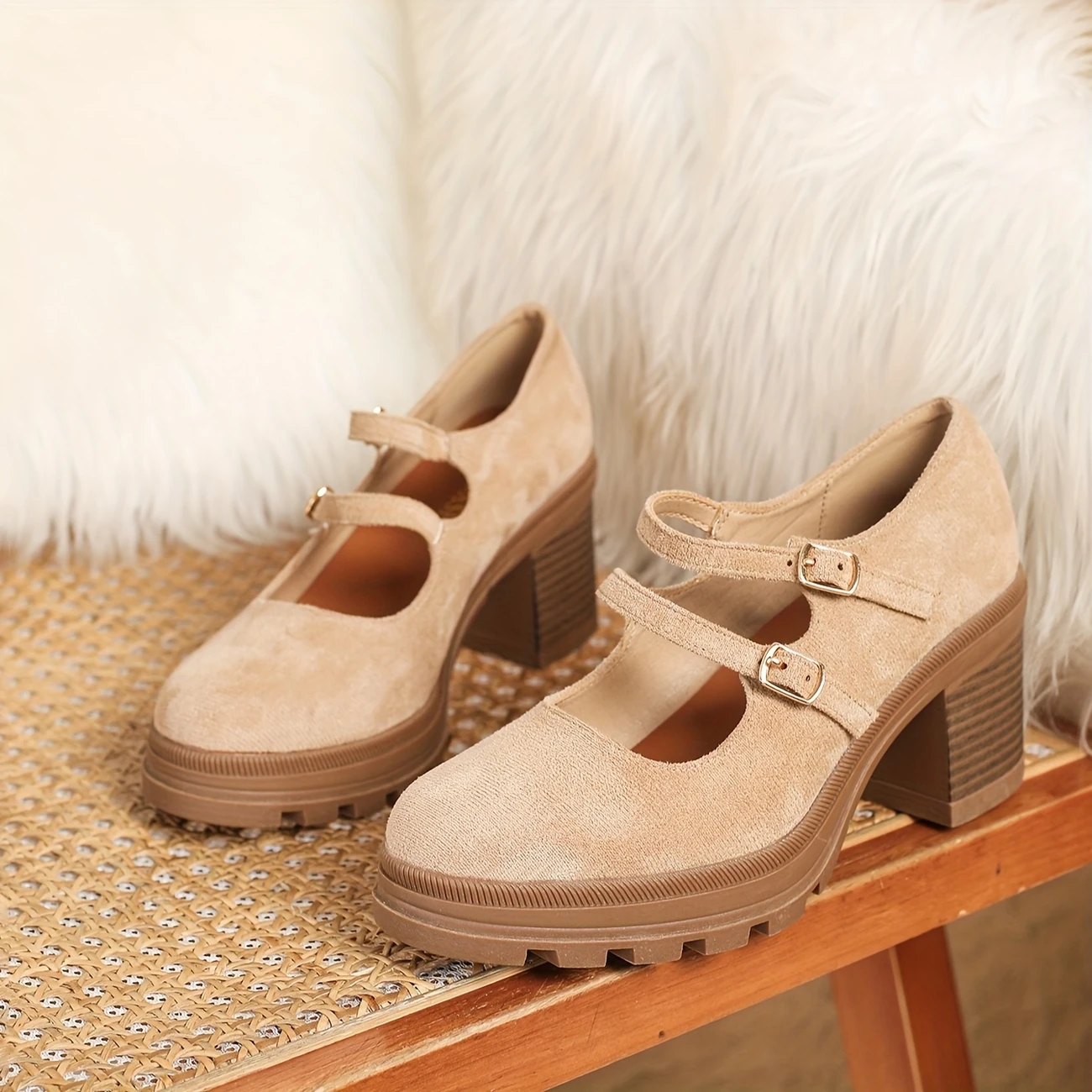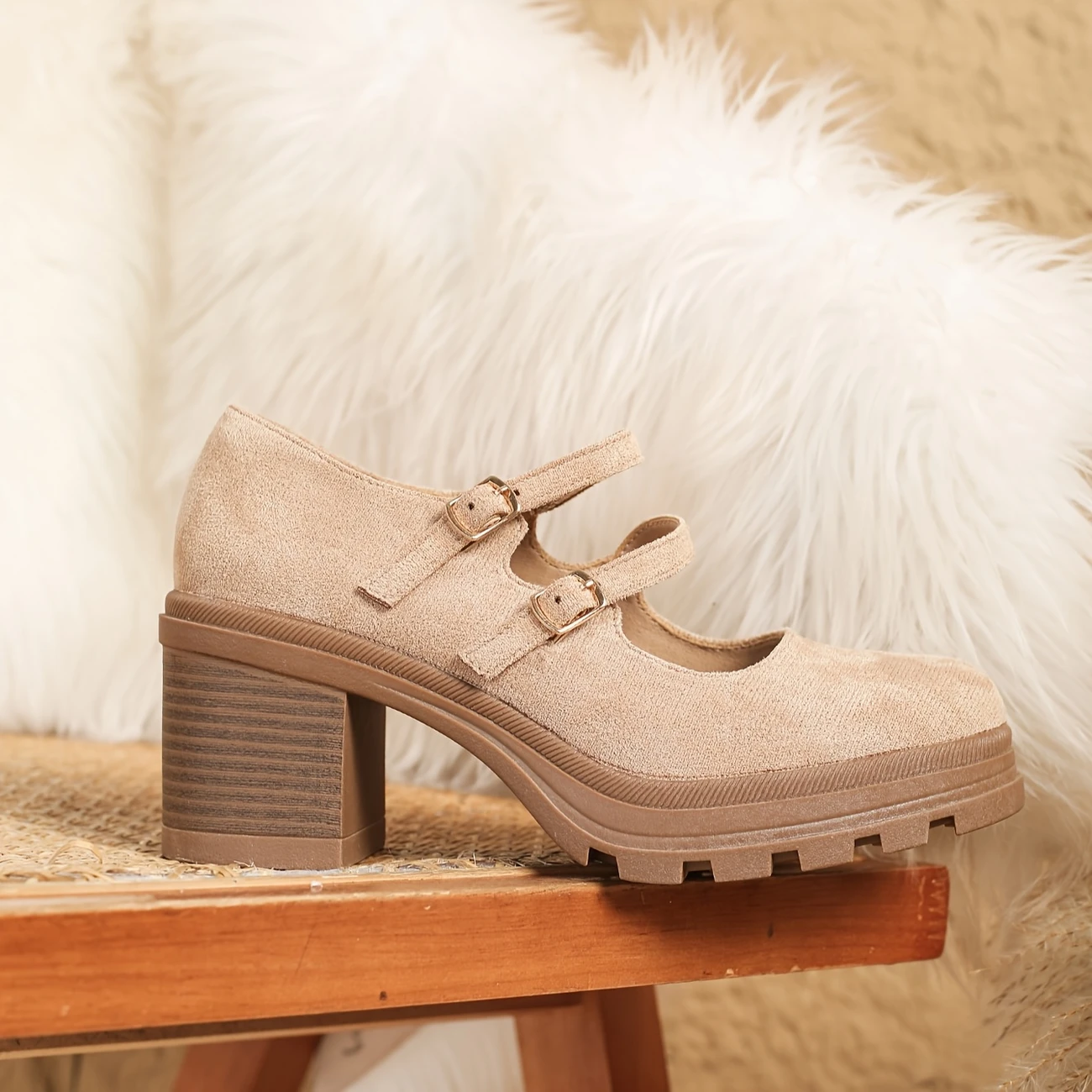 Կանացի ռետրո հաստ կրունկով Mary Jane պարային կոշիկներ բեժ շագանակագույն հարթակով շնչող կրկնակի ճարմանդով ամբողջ սեզոնային: Պարային ռետինե տակացու կոշիկներ