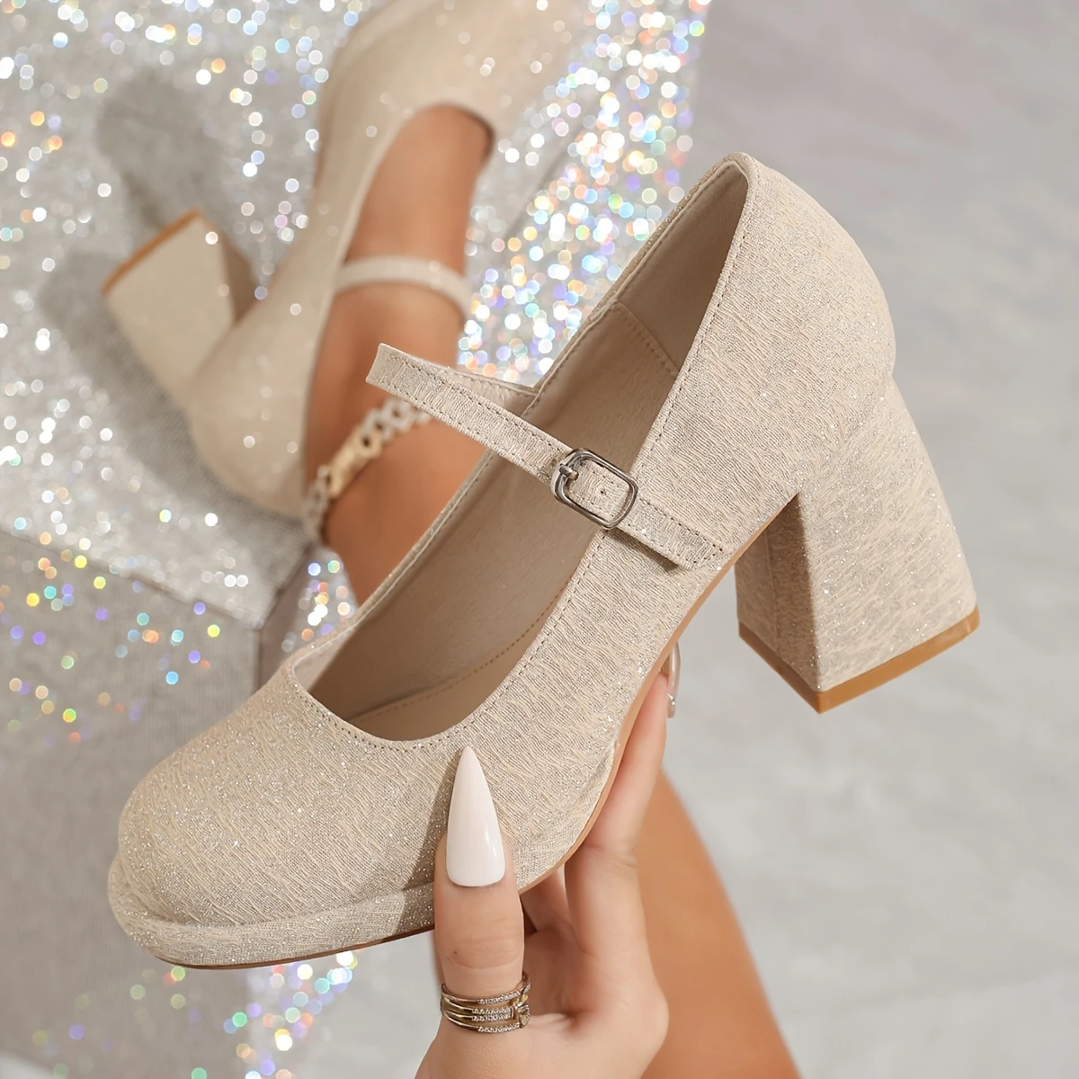 Կանացի կլոր ծայրով ամբողջ սեզոնային գործվածքից վերնամասով՝ արհեստական նյութերով, TPU ներբանով և հարմարավետ ներբանով՝ շքեղ բարձրակրունկ Mary Jane կոշիկներ: