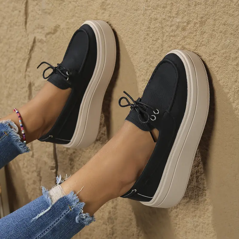 Կանացի Penny Slip-On Loafers - Սև կլոր ծայր արհեստական կաշվից հարթակ TPR միակ հարմարավետ գործվածքների կոմպոզիցիա բոլոր սեզոններին հարմարավետ կրելու համար Բազմակողմանի ոճ Կոշիկի էլեգանտ դիզայն Երկարակյաց արտադրանք